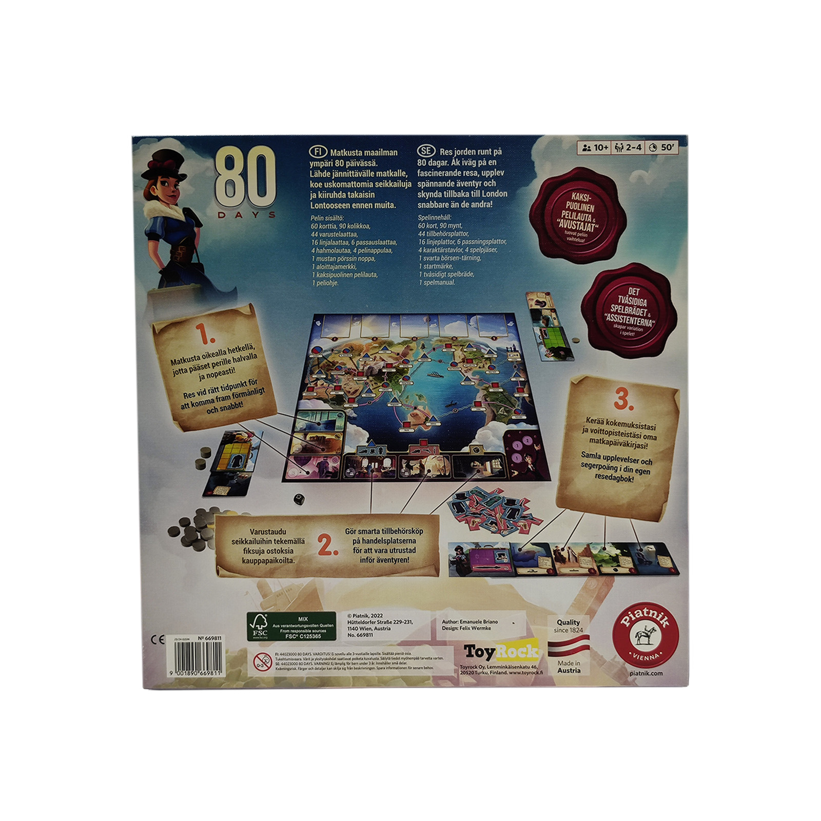 Seikkailupeli, jossa pelaajat matkustavat eri reittejä pitkin ympäri maailmaa.Sopii 2–4 pelaajalle, kokonaan suomeksi.Hyvässä käytetyssä kunnossa, kaikki osat tallella.Arvioitu laajasti erittäin hyväksi peliksi!
