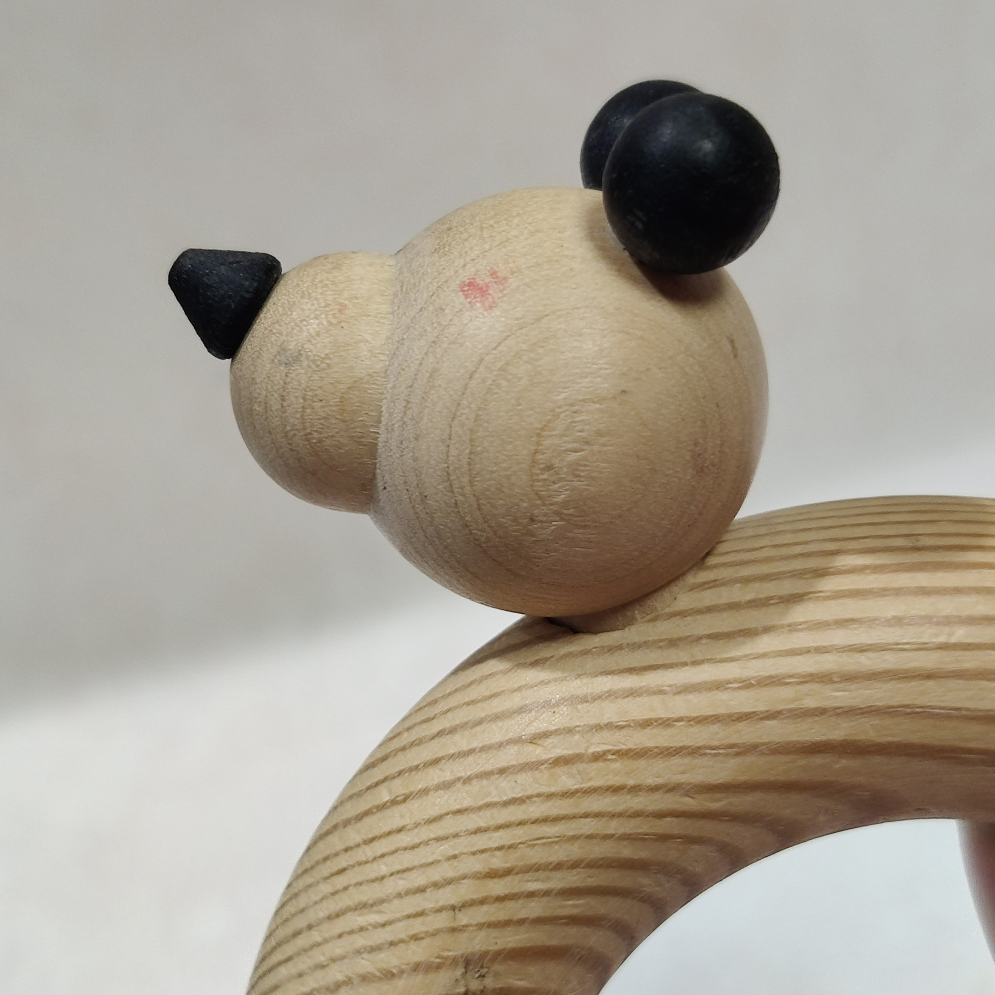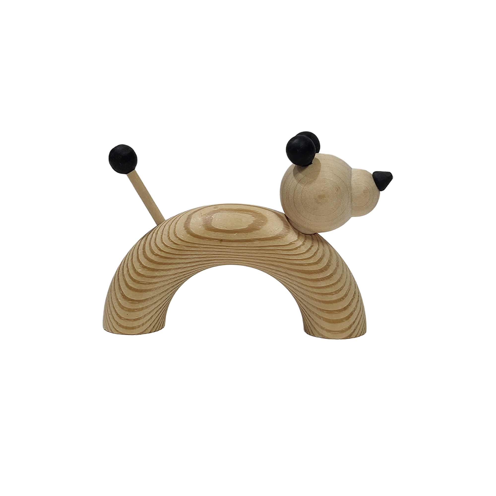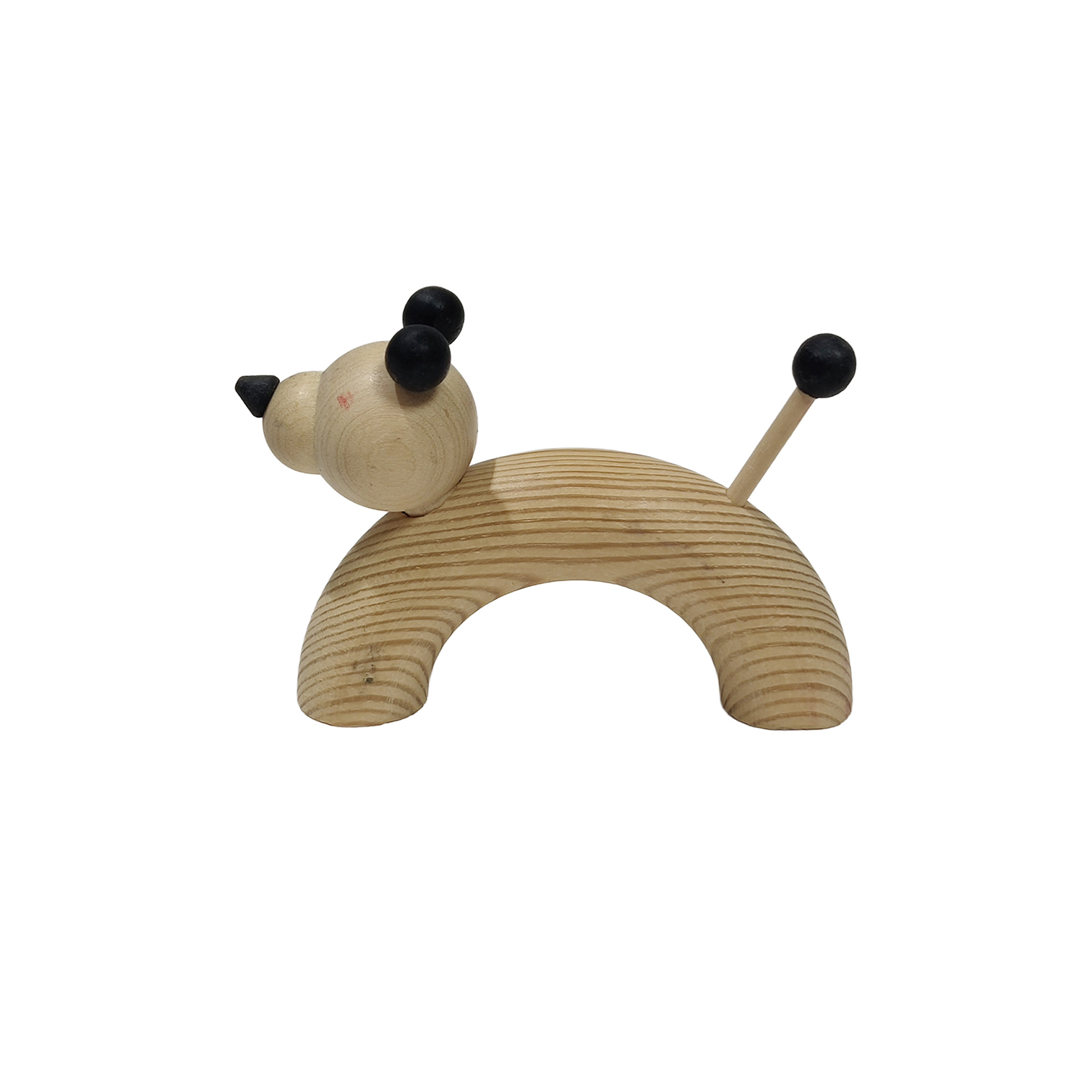 Aarikan puinen koirahahmo.Huomioithan, että esineessä on käytönjälkiä: naaman ja vartalon alueellaon näkyviä jälkiä (katso kuvat).Mitat: noin 9,8 × 7 cm.