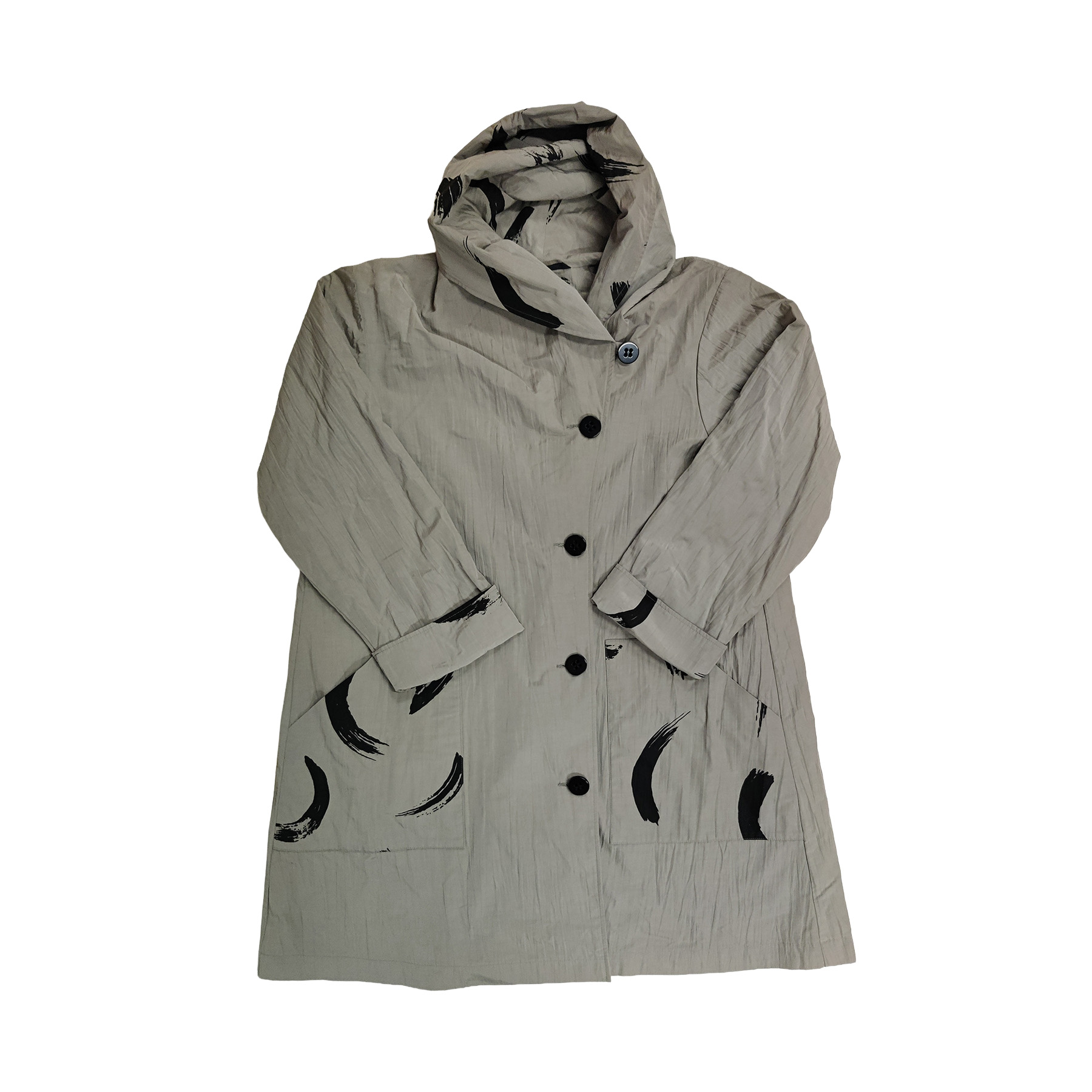 Kotimainen Aino -takki / kevättakki, väri beige/musta. Koko M (reilu, katso mitat).Hyvä vintage-kunto.Mitat: kai-kai 58 cm, pituus 94 cm.