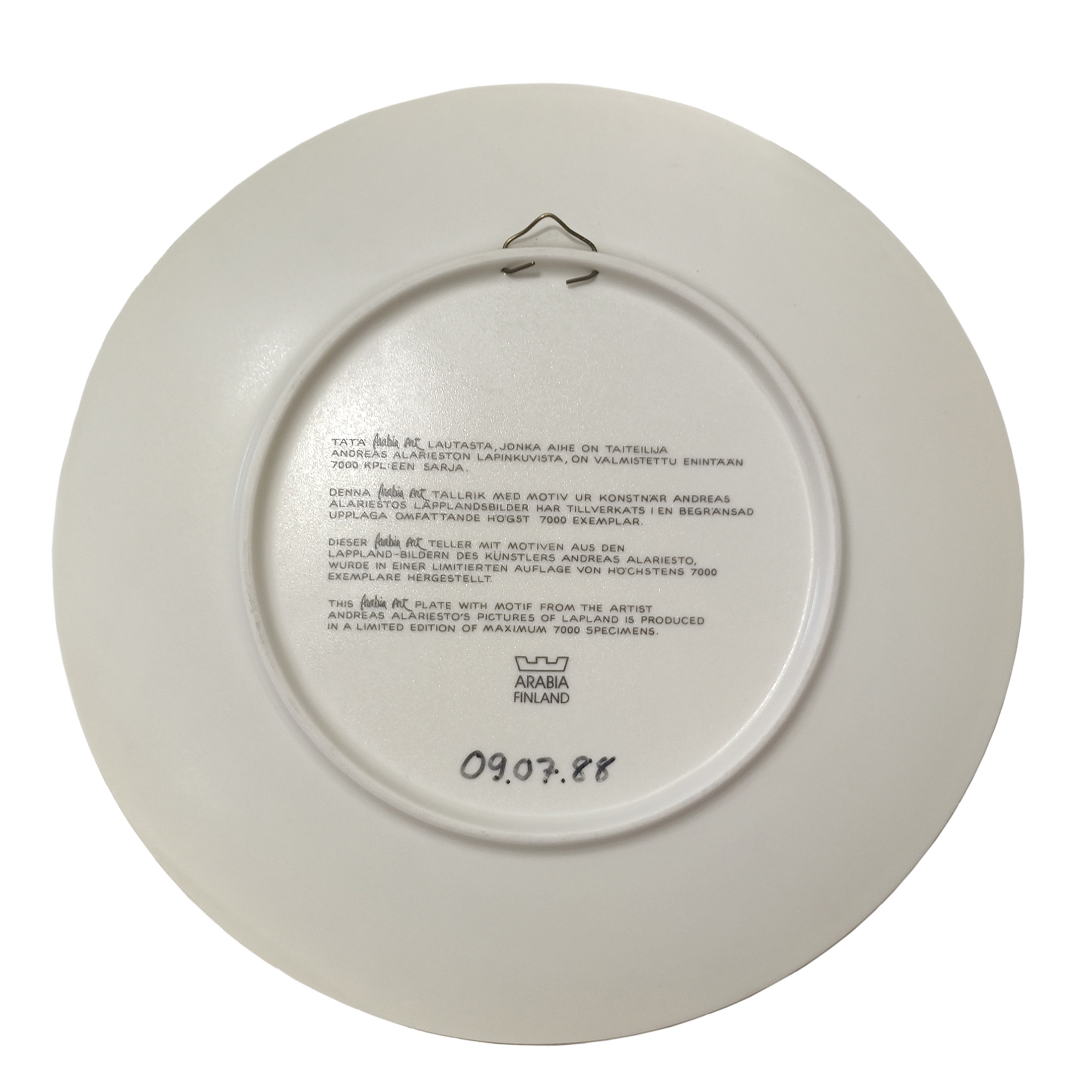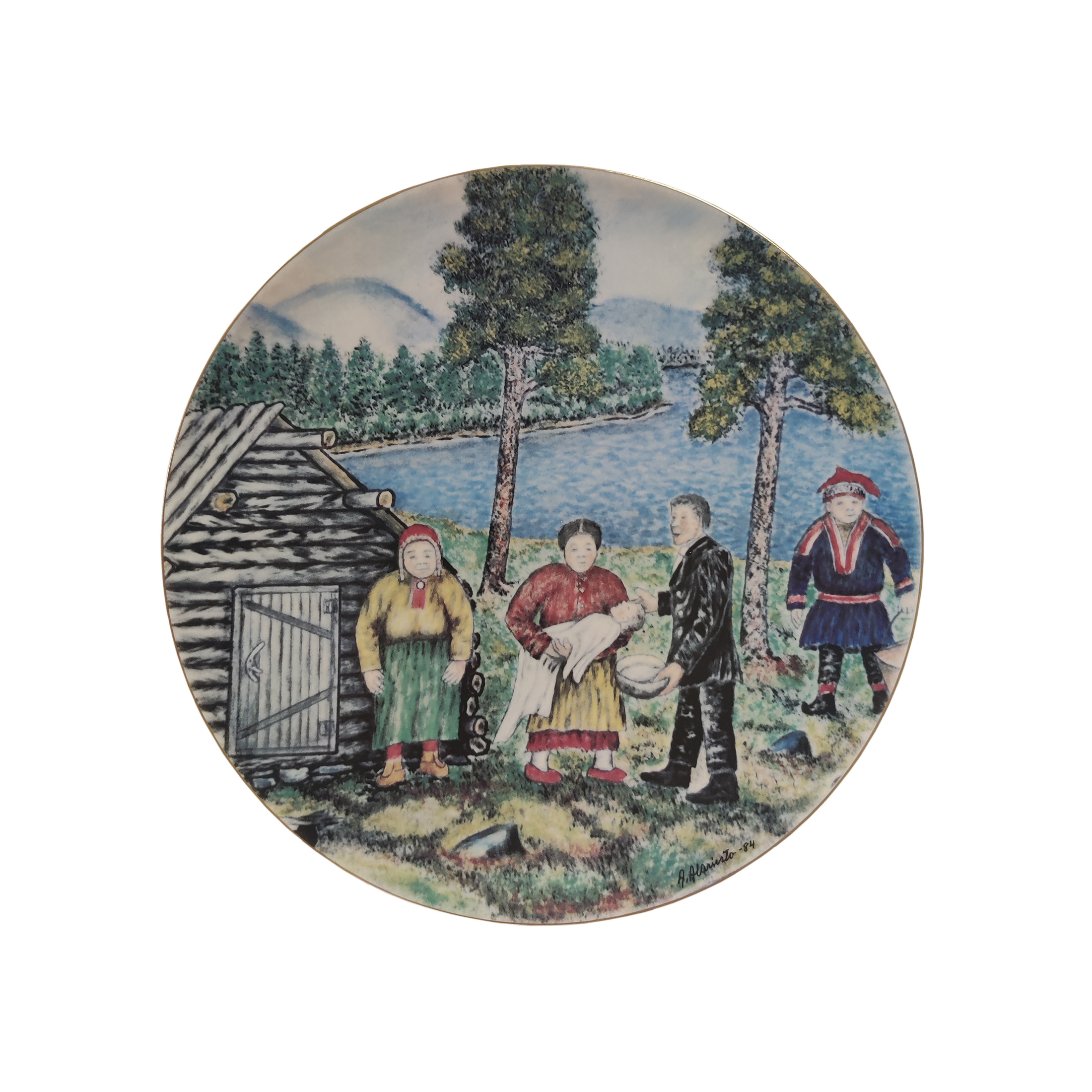 Andreas Alarieston iso Lappi aiheinen taidelautanen-seinälautanen.Hyvä kunto.Mitat: halkaisija n. 29,7 cm.