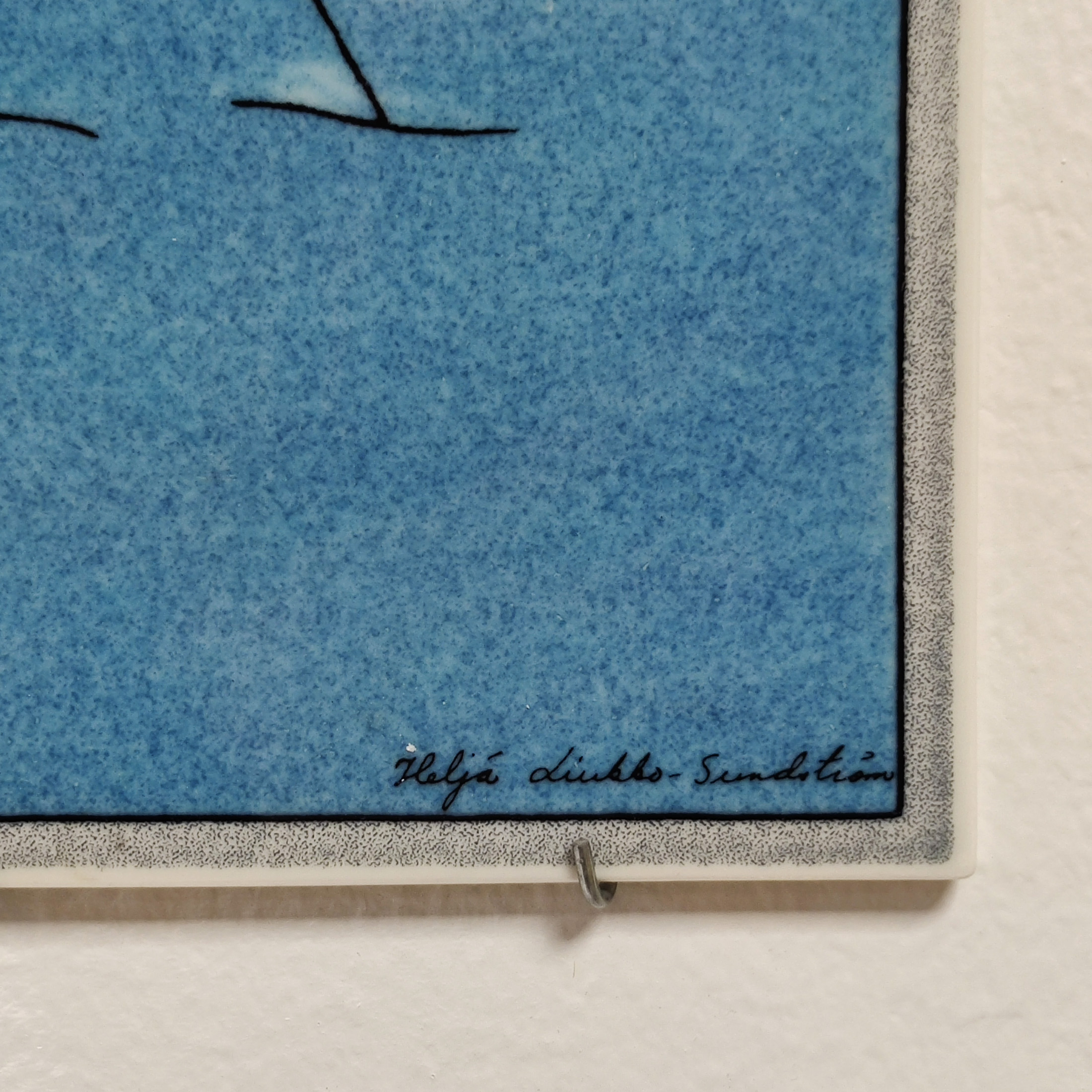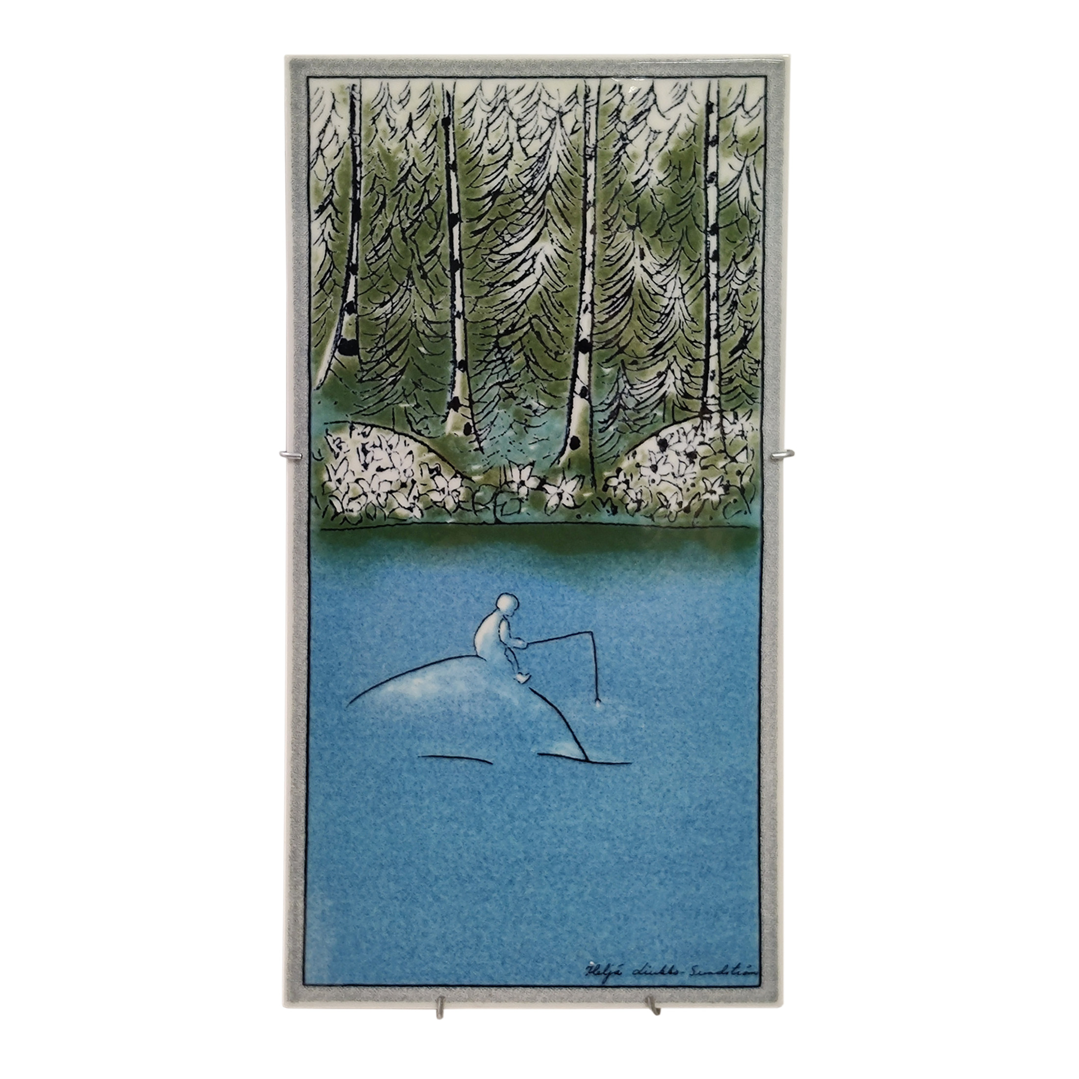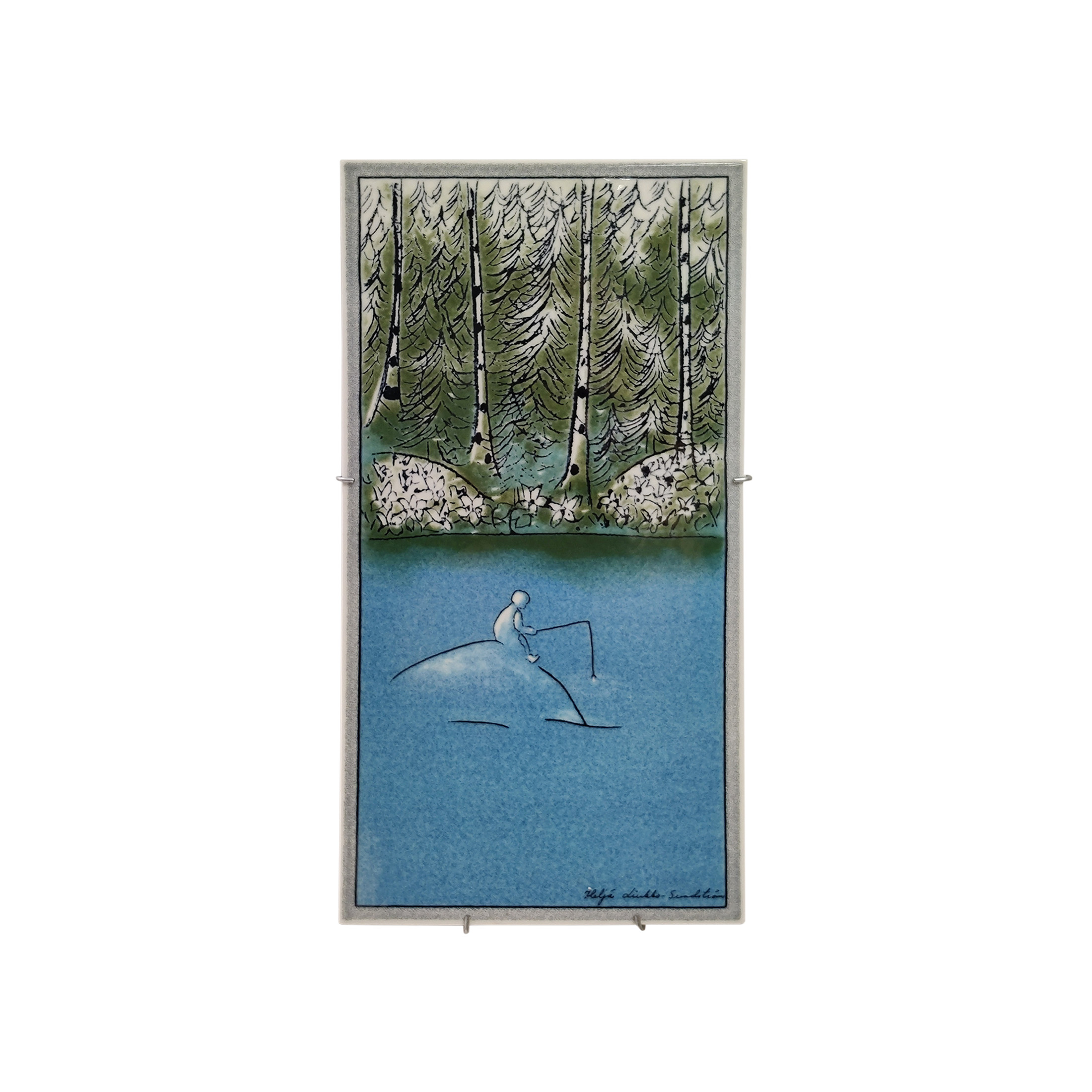 Seinälaatta sarjasta ihminen ja luonto, ''onkija'' suunnittelija Heljä Liukko-Sundstöm.Hyvä kunto, vähän käytönjälkiä.Mitat: n. 31 × 16 cm.