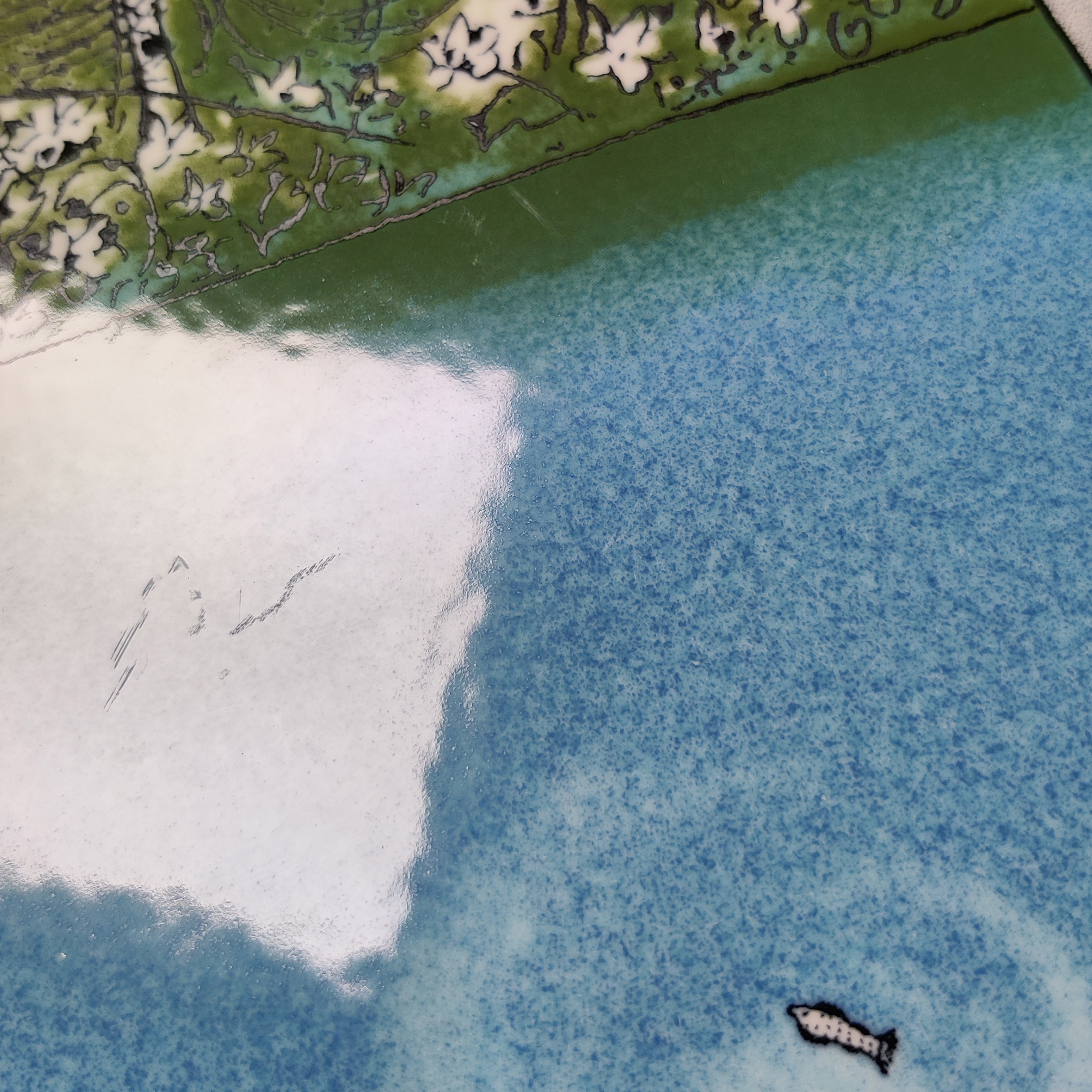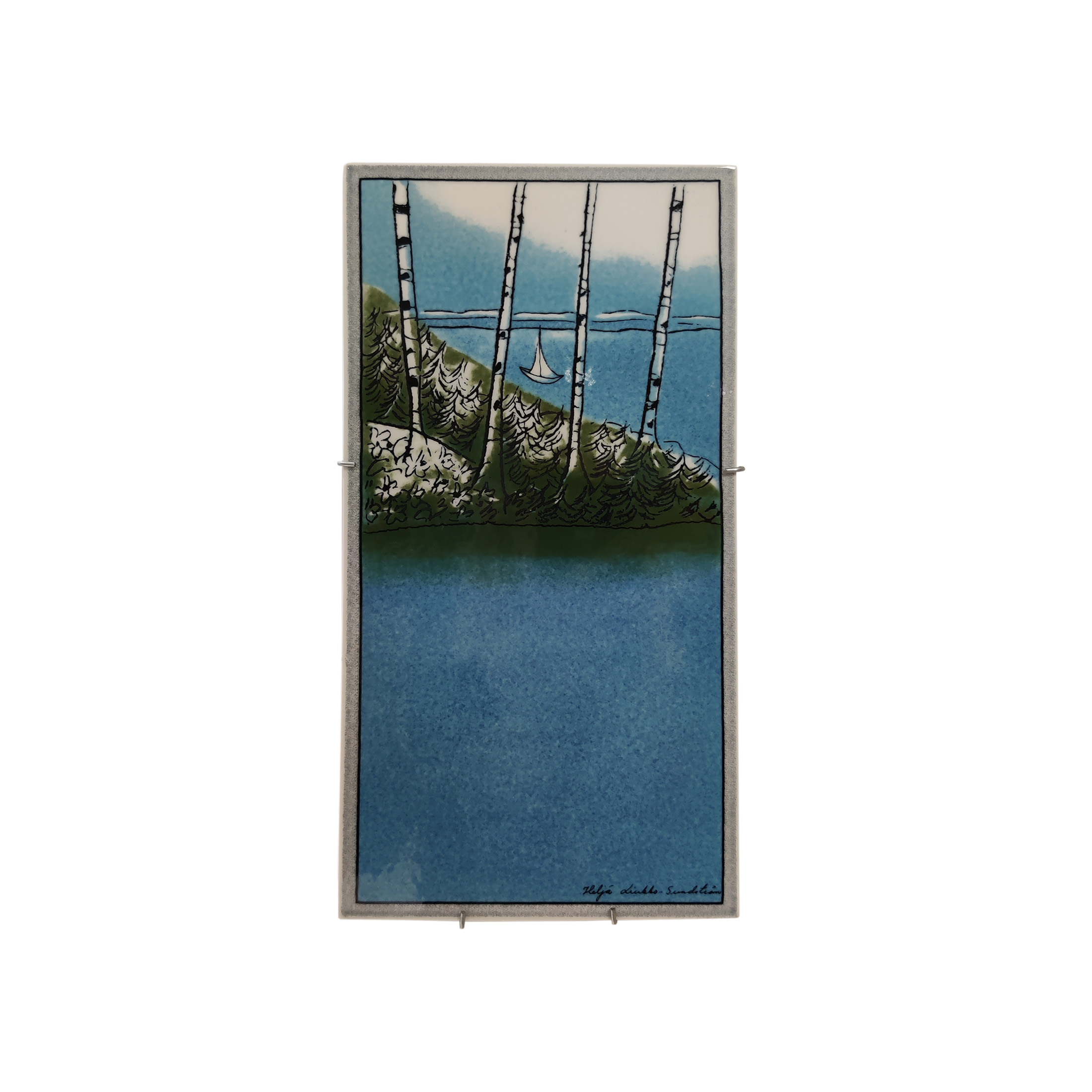 Seinälaatta sarjasta ihminen ja luonto, ''piironki'' suunnittelija Heljä Liukko-Sundstöm.Vähän käytönjälkiä, katso kuvat.Mitat: n. 31 × 16 cm.