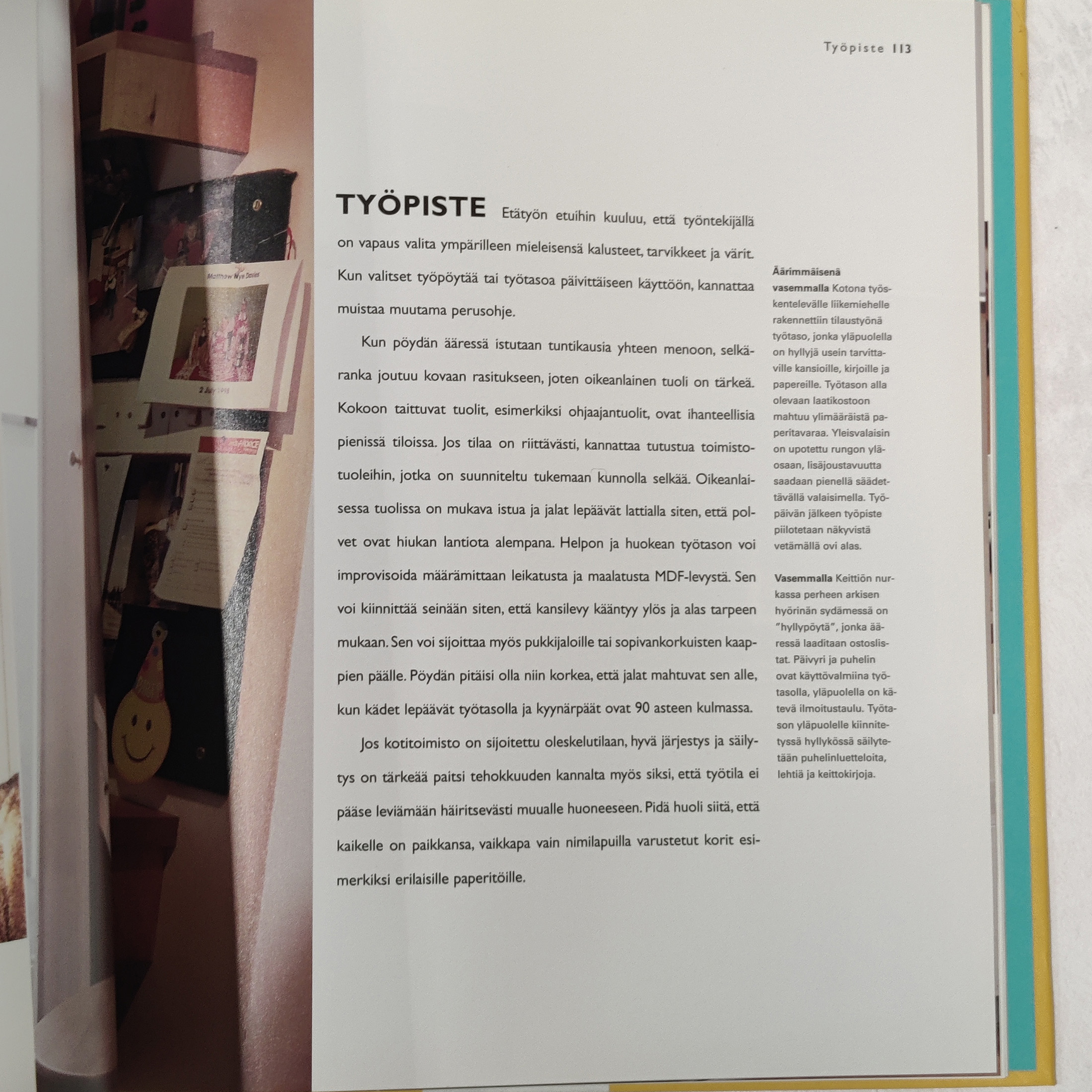 “Avara koti” is a book that guides readers on how small spaces can be decorated in a functional and stylish way. Publisher: Avotakka / Gummerus, 2001