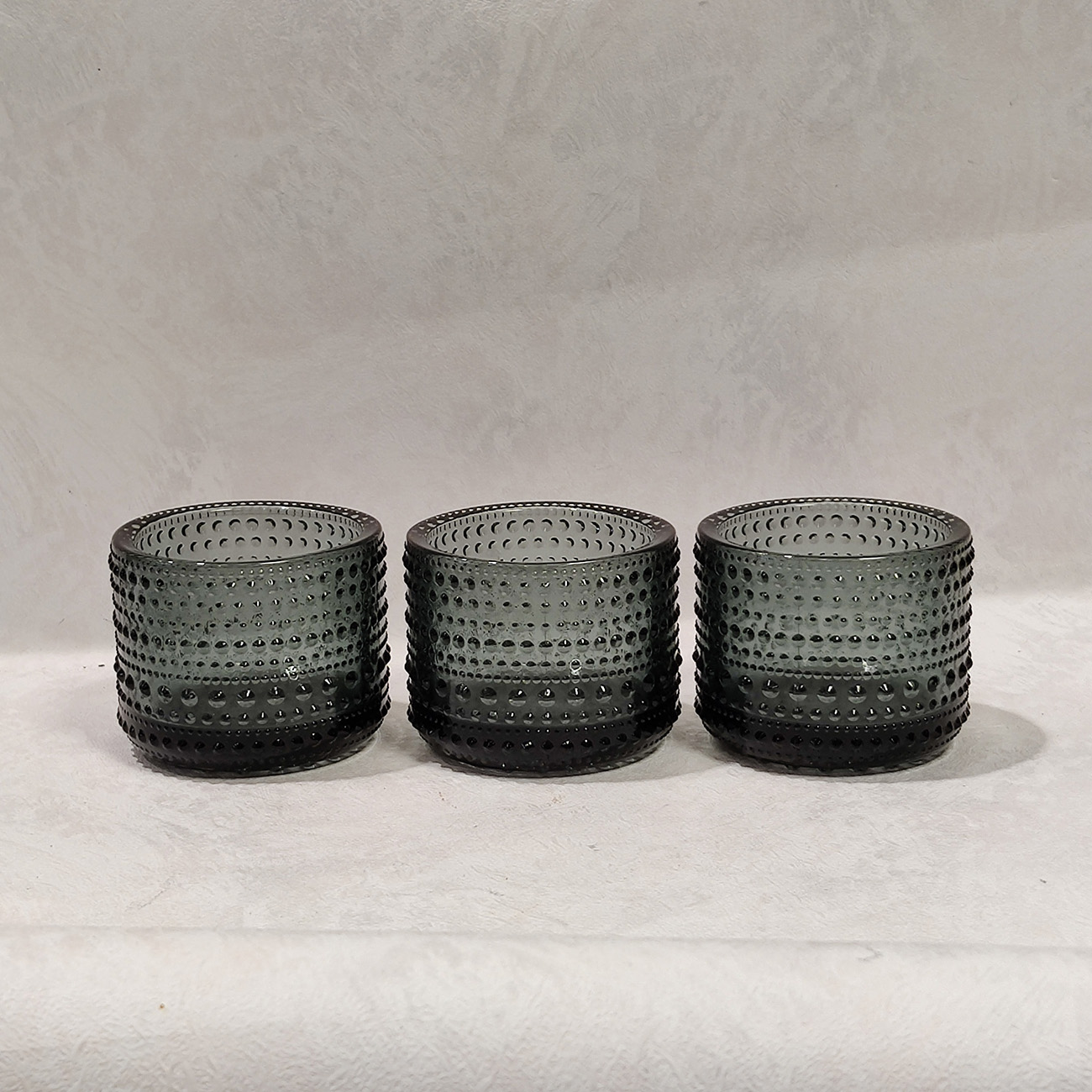 Iittala Kastehelmi tuikku/kynttilälyhty, harmaa.Hyvä käytetty kunto, hinta per kappale.Mitat: halkaisija n. 7,5 cm, korkeus n. 6 cm.