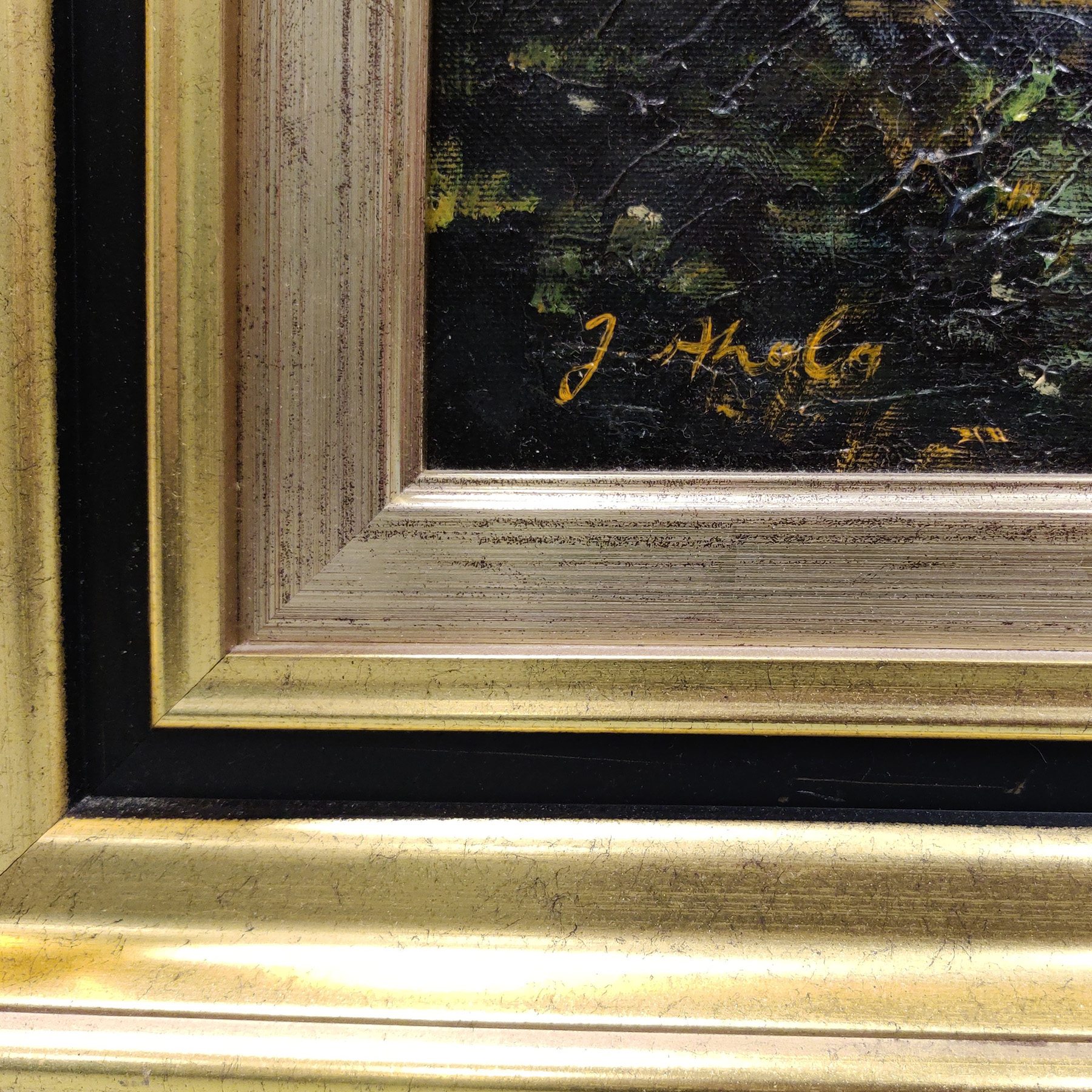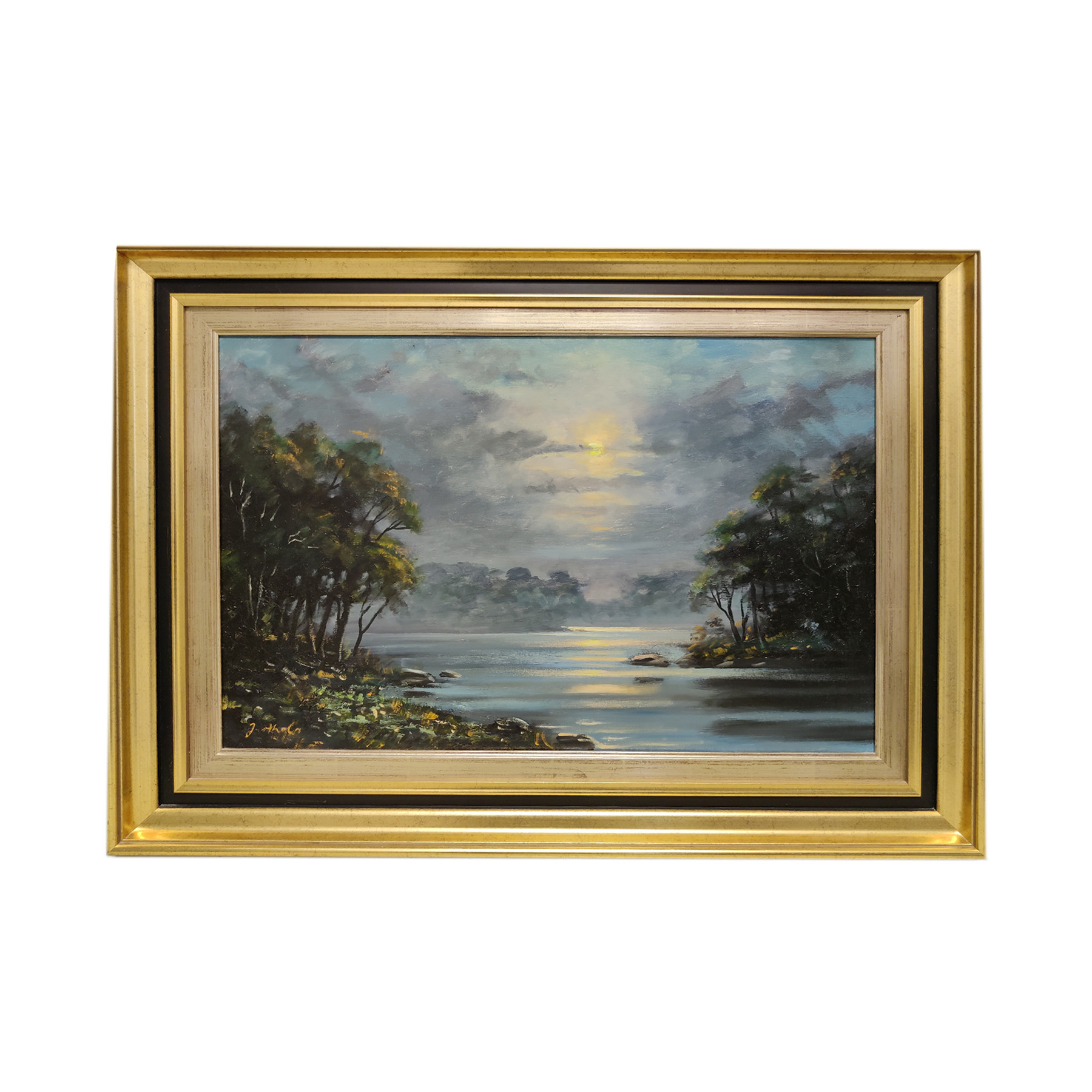 J. Aholan maalaus , signeerattu. Kultainen kehys.Hyvä vintage kunto, kehyksissä vähän jälkiä.Mitat: n. 95 cm x 93,5 cm.
