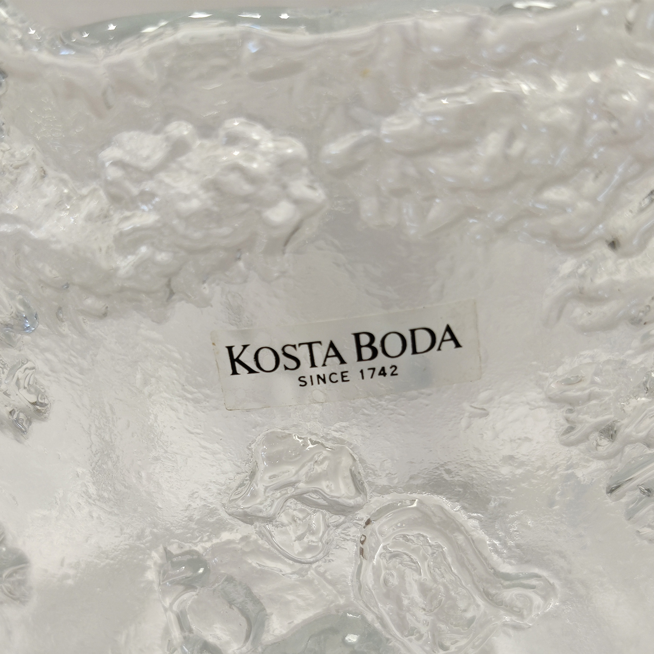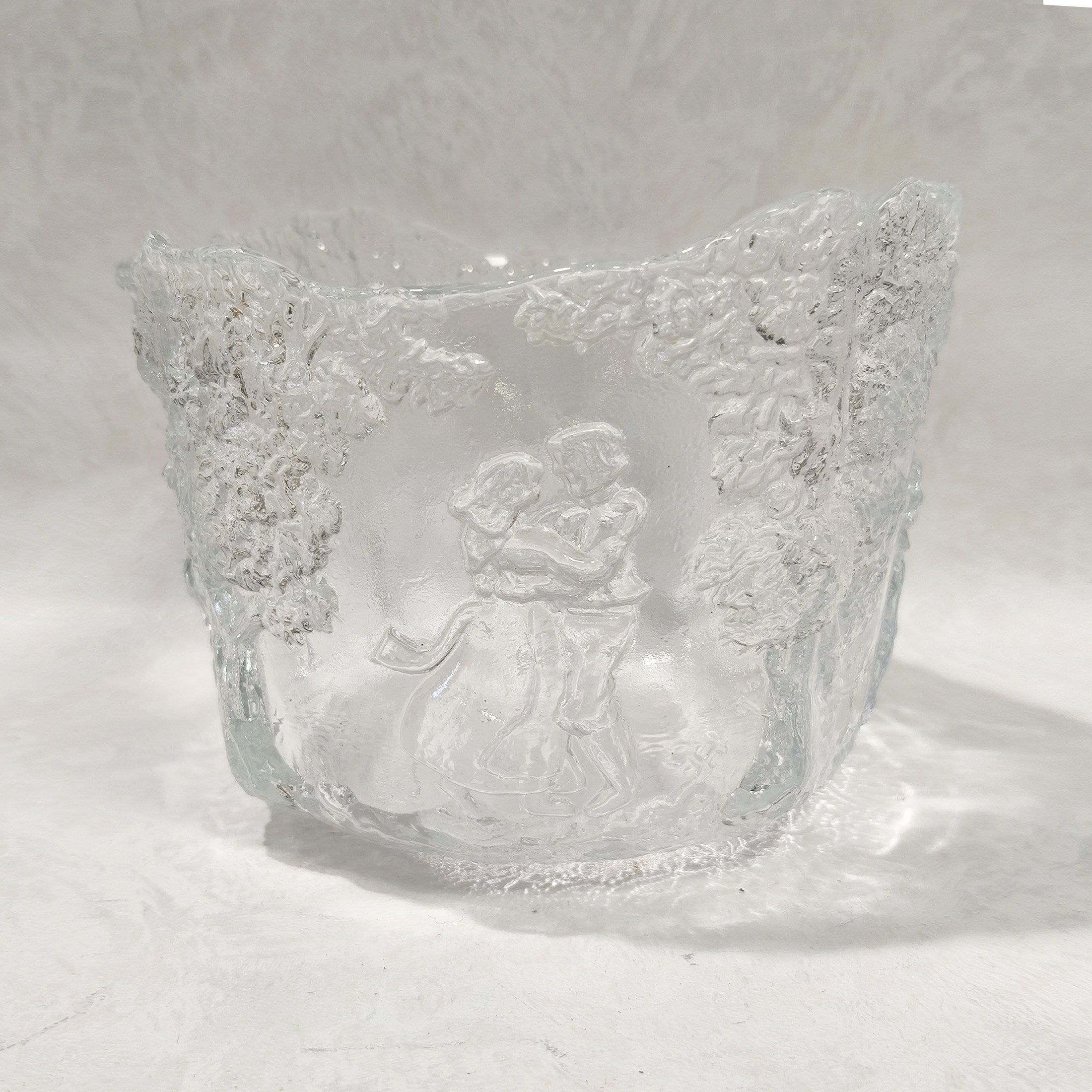 Kosta Boda Rhapsody -lasikulho, suunnittelija Kjell Engman.Kulhoa kutsutaan myös nimellä “Juhannustanssit”.Hyvä vintage-kunto.Mitat korkeus noin 14,5 cm, halkaisija noin 19 cm.