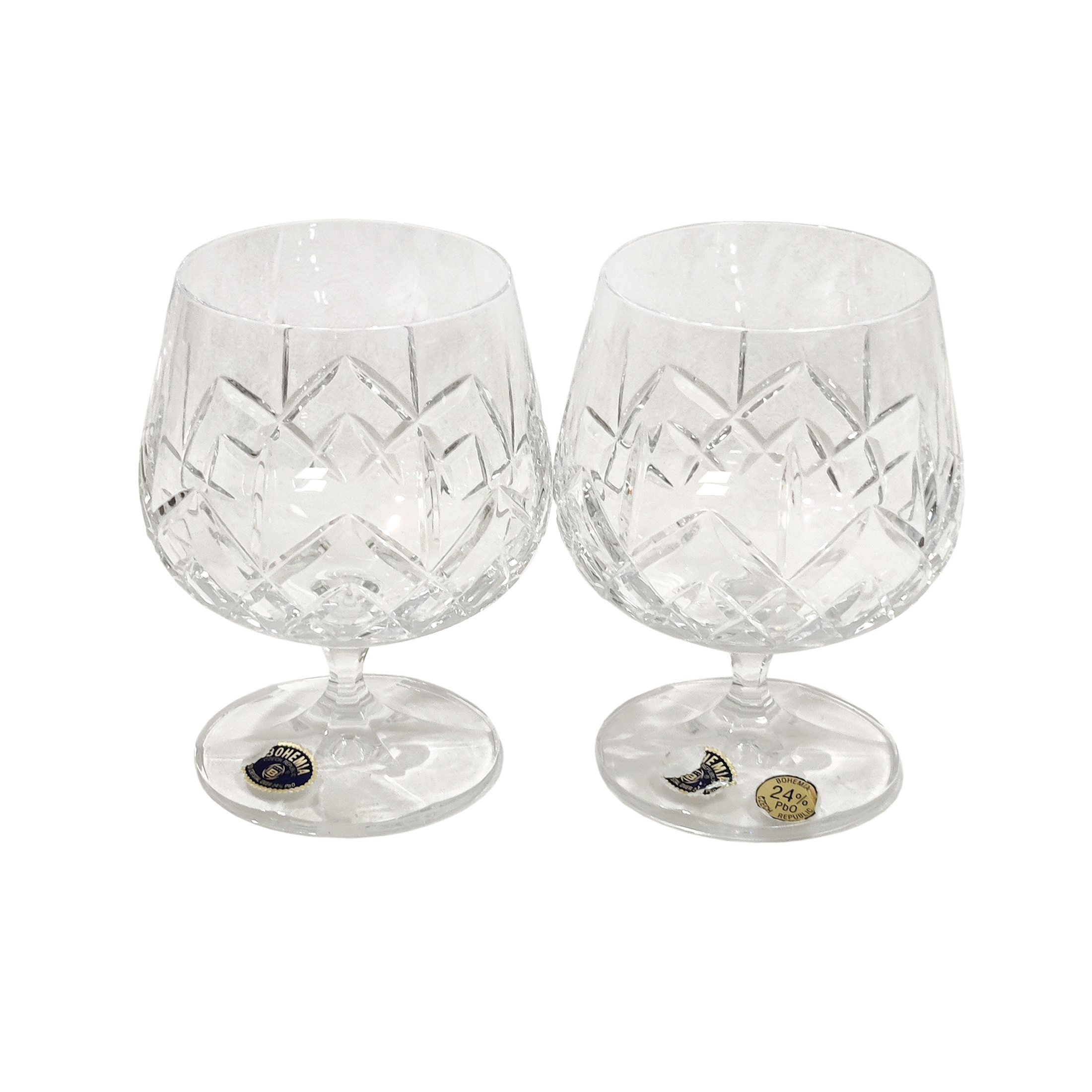 Bohemia-kristallilasi, 2 kpl (hinta per kpl).Hyvä, käytetty kunto.Mitat: Halkaisija noin 7,5 cm, korkeus noin 11 cm.