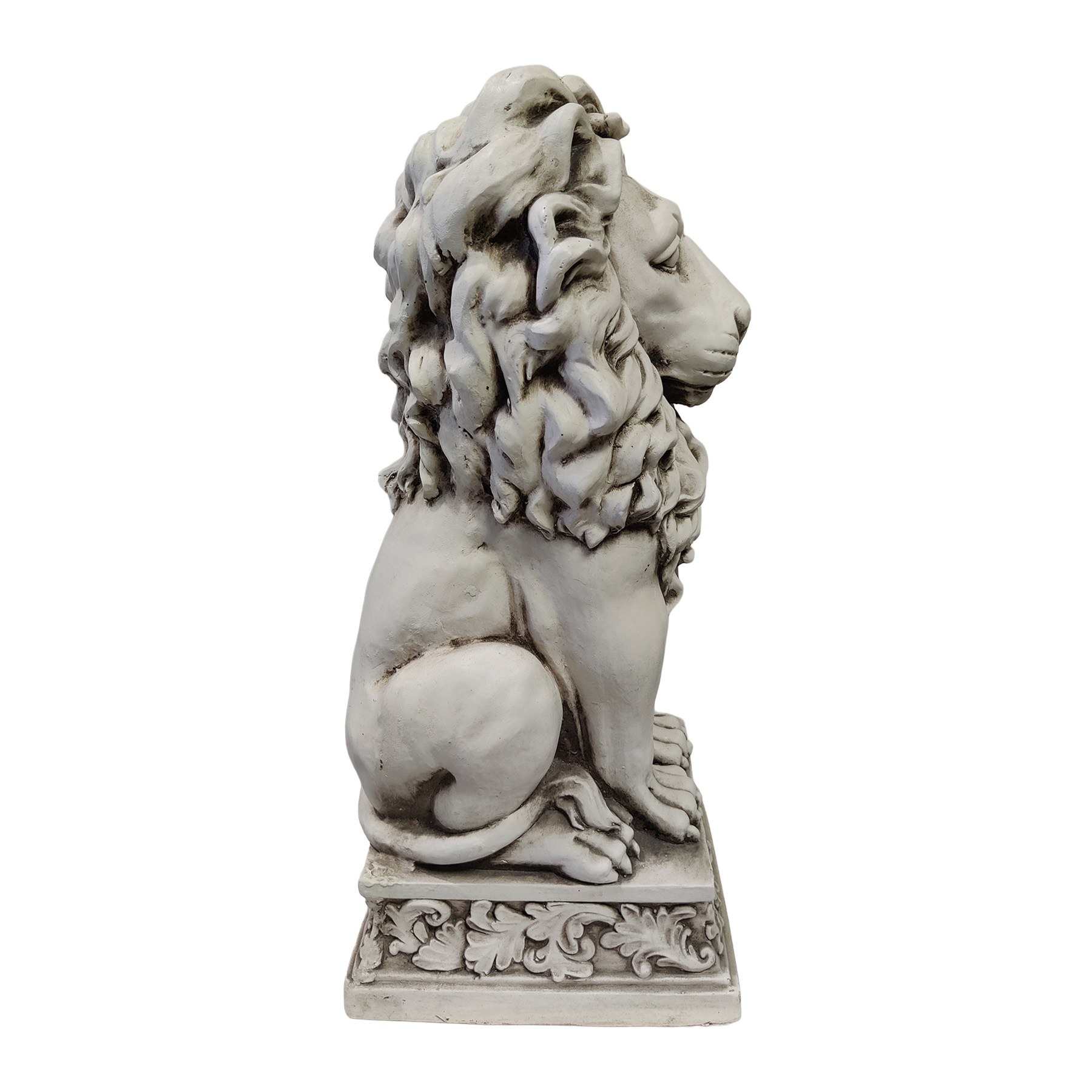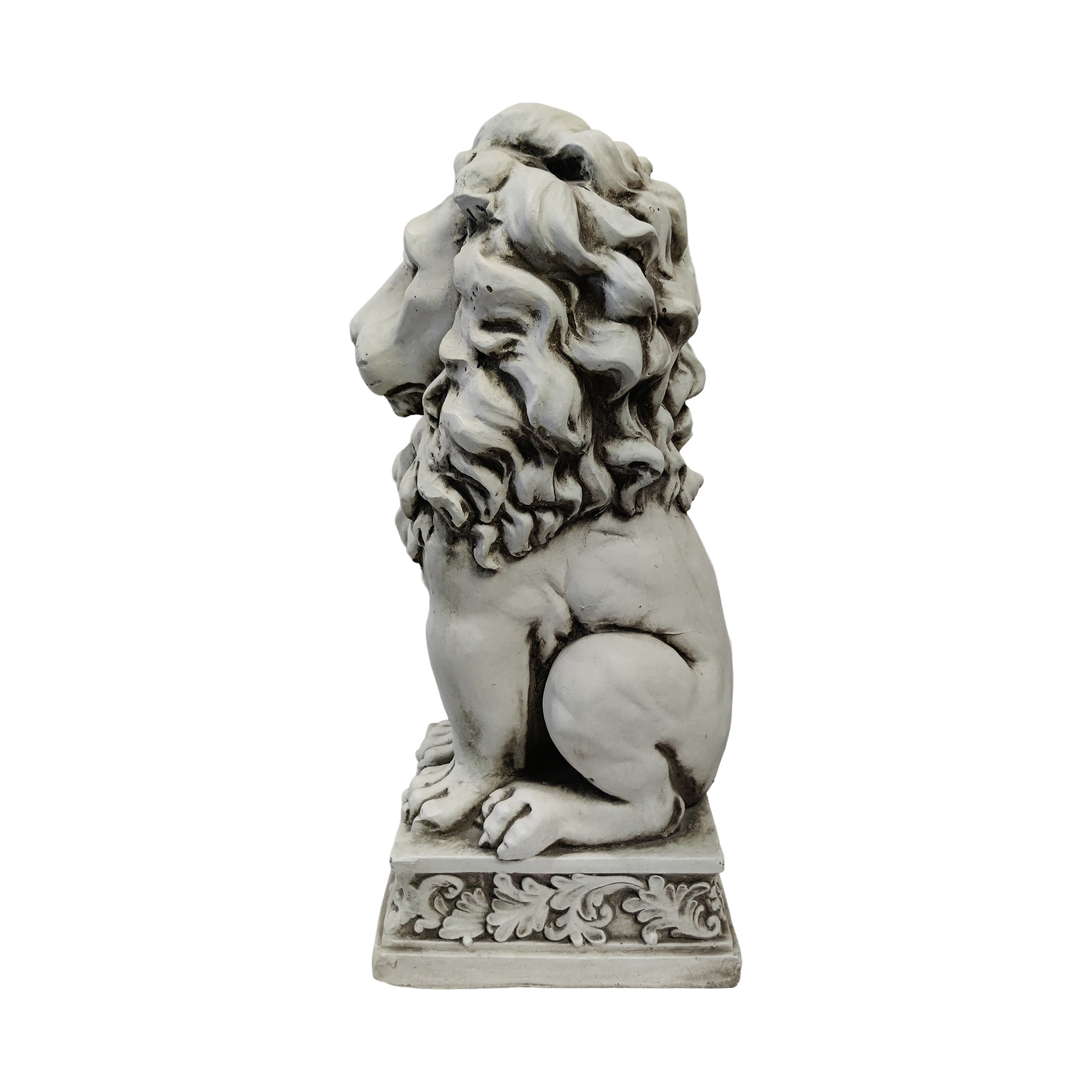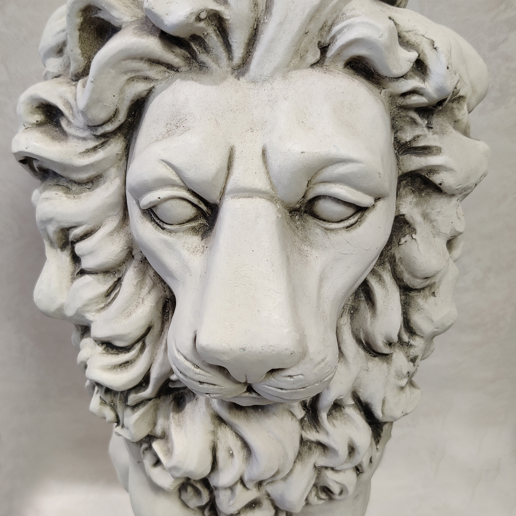Kipsi leijona patsas.Hyvä käytetty-kunto, vähän käytönjälkiä (katso kuvat).Mitat: n. 61 x 27 x 24 cm.