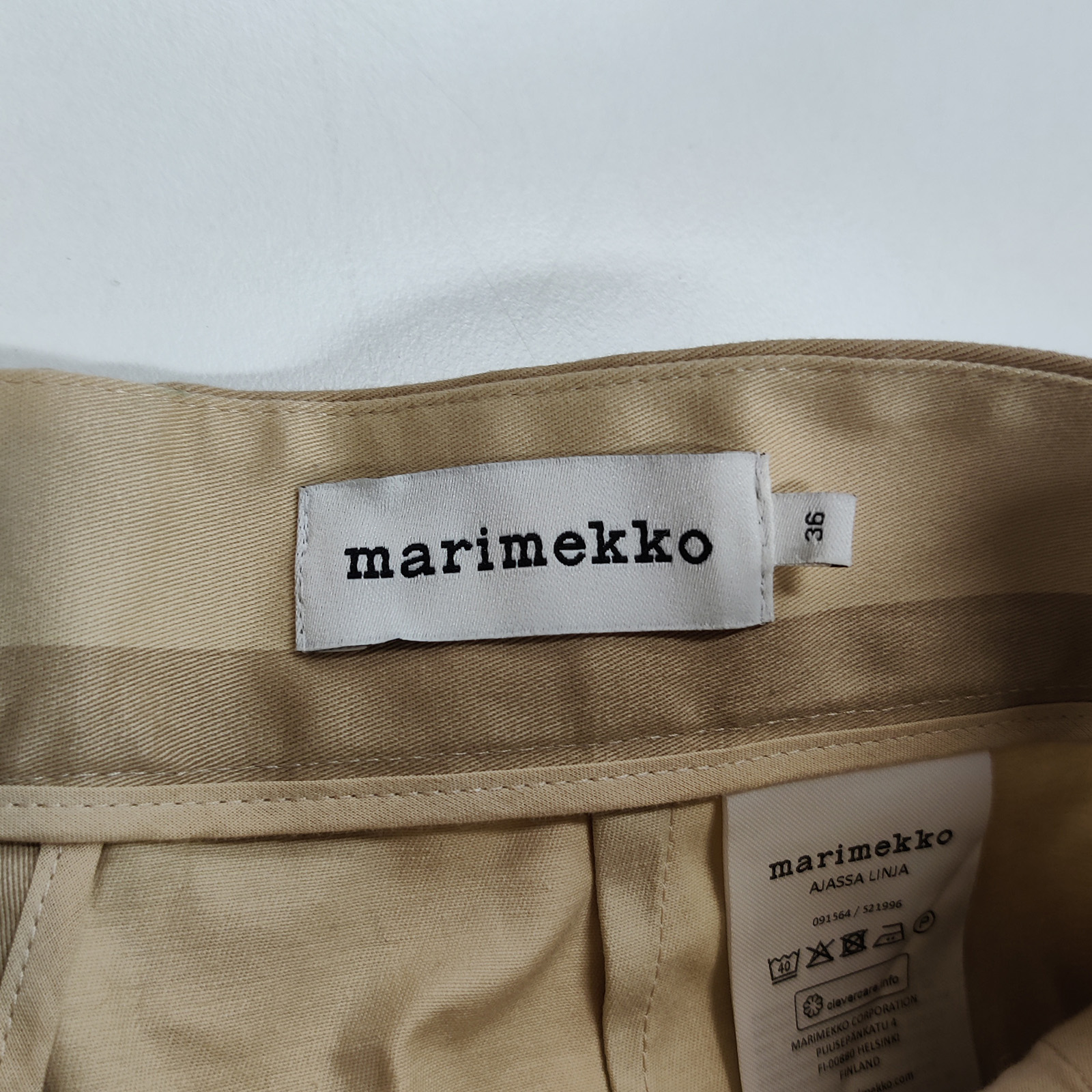 Marimekko housut, malli ”Ajassa linja”, koko 36.Hyvä käytetty kunto.Mitat: vyötärö n. 34,5 cm, pituus 107 cm.