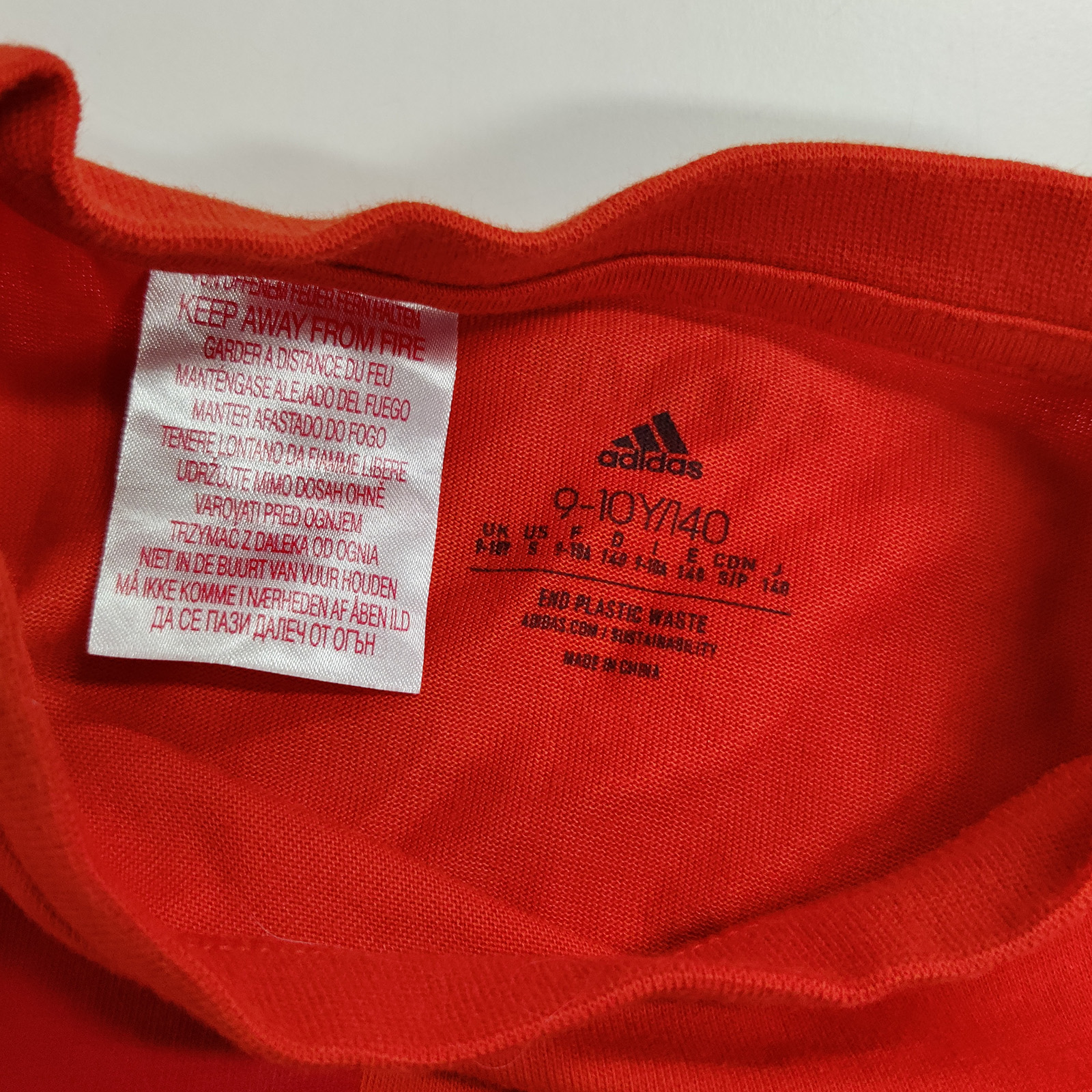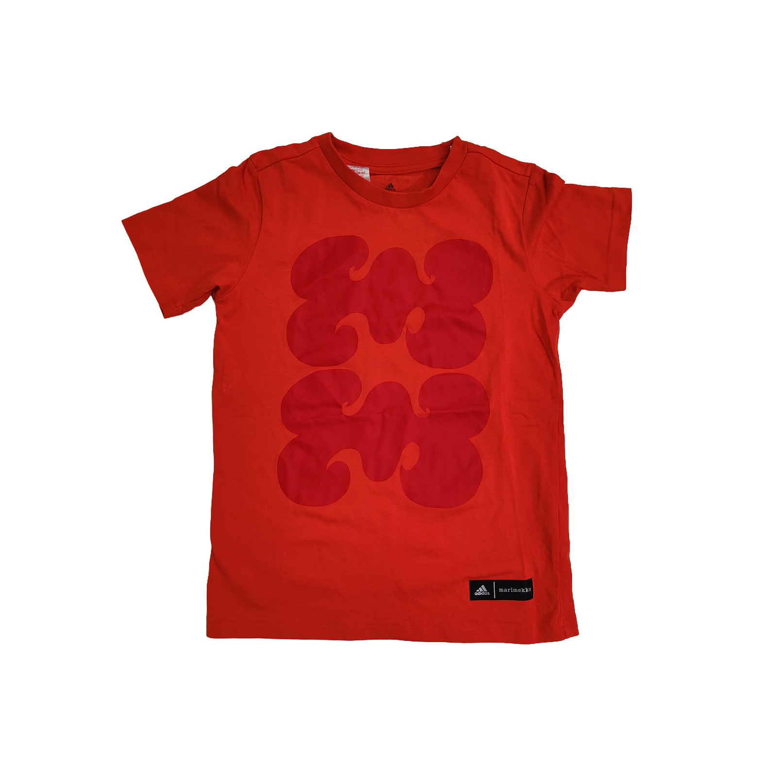 Marimekko x Adidas kids’ T-shirt in orange. Size 9/10 Y, 140 cm.Good condition.Measurements: pit to pit 38 cm, length 53 cm.