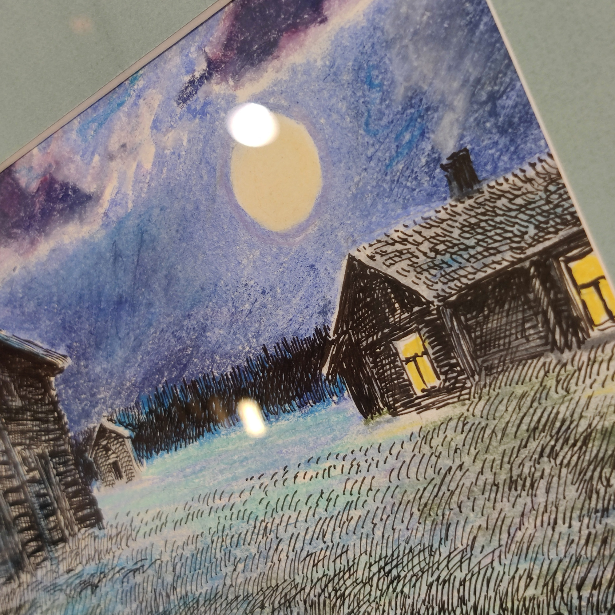 Matti Korhosen taideteos, signeerattu. Hyvä vintage kunto.Mitat: n. 40 × 31 cm.