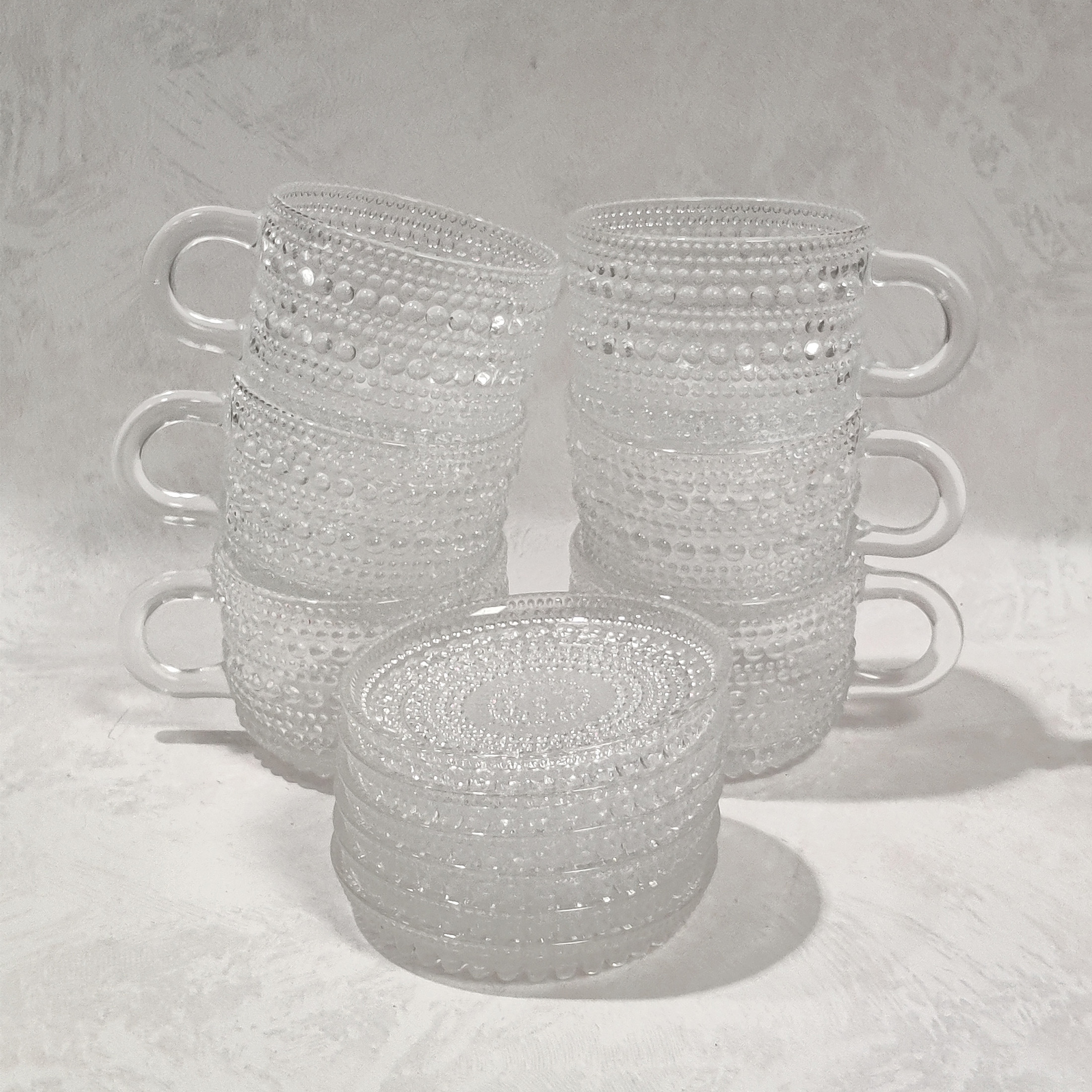 Nuutajärven Lasi Kastehelmi kuppi ja asetti, Oiva Toikka