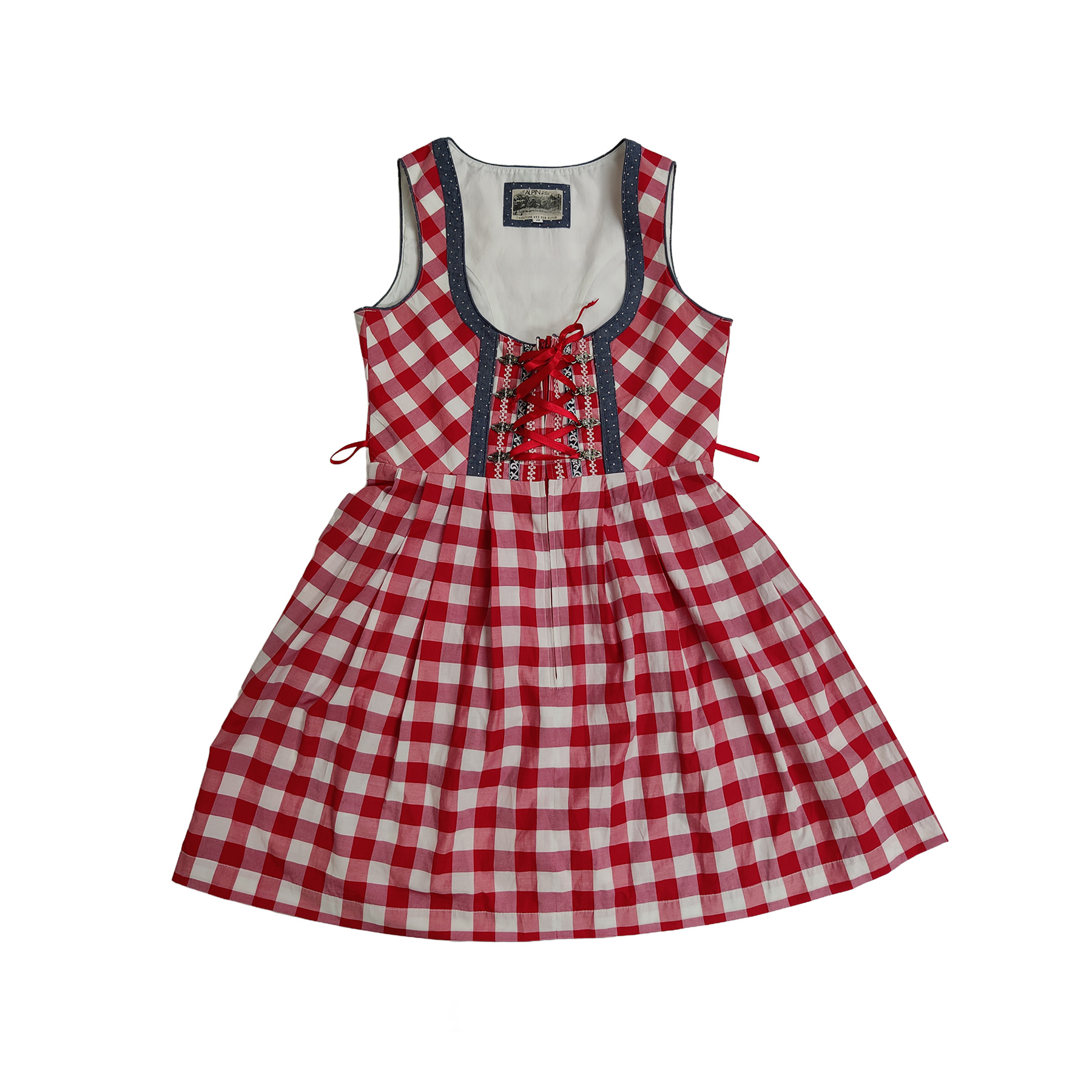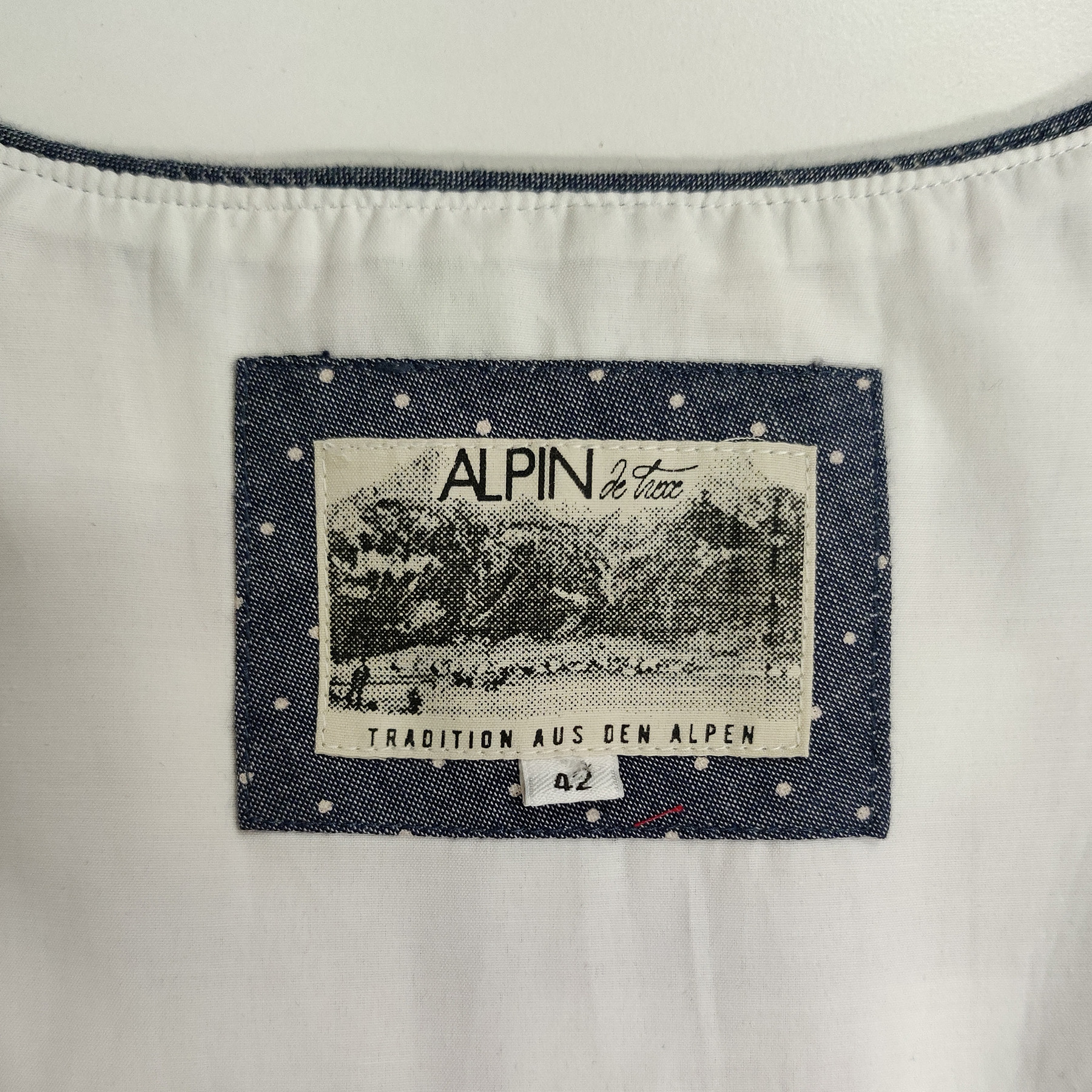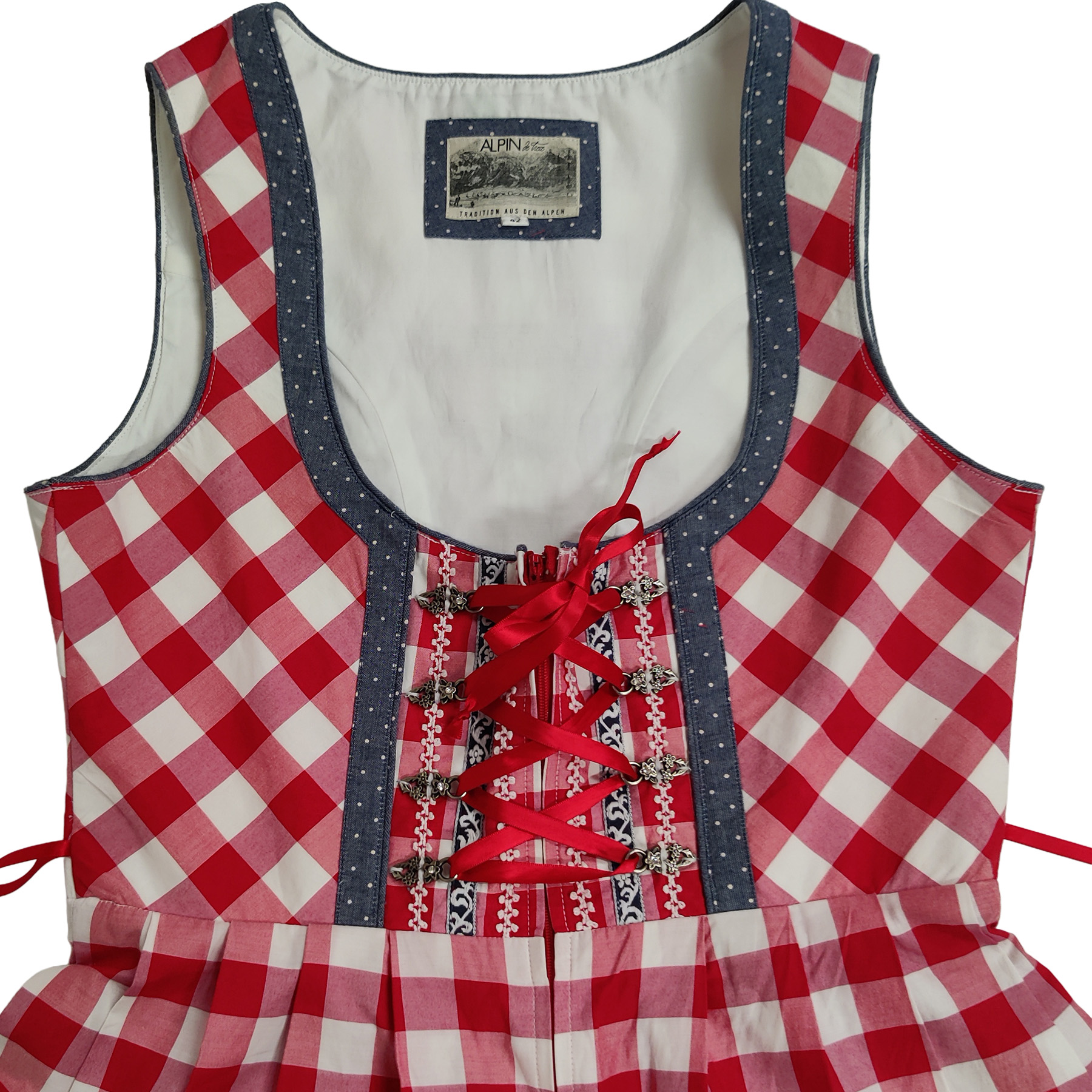Perinteinen Alpin-mekko, jota käytetään erityisesti saksalaisilla Oktoberfest-festivaaleilla.Koko 42 (katso mitat).Hyvä vintage-kunto.Mitat: kainalo–kainalo 48 cm, pituus 85 cm.