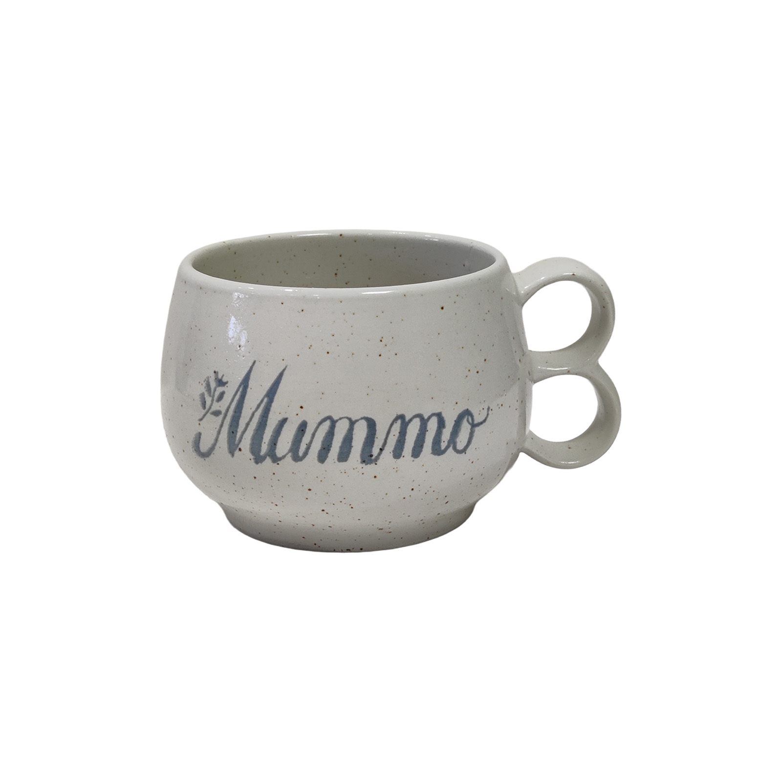 Pentik kaksikorvamuki tekstillä “Mummo”.
