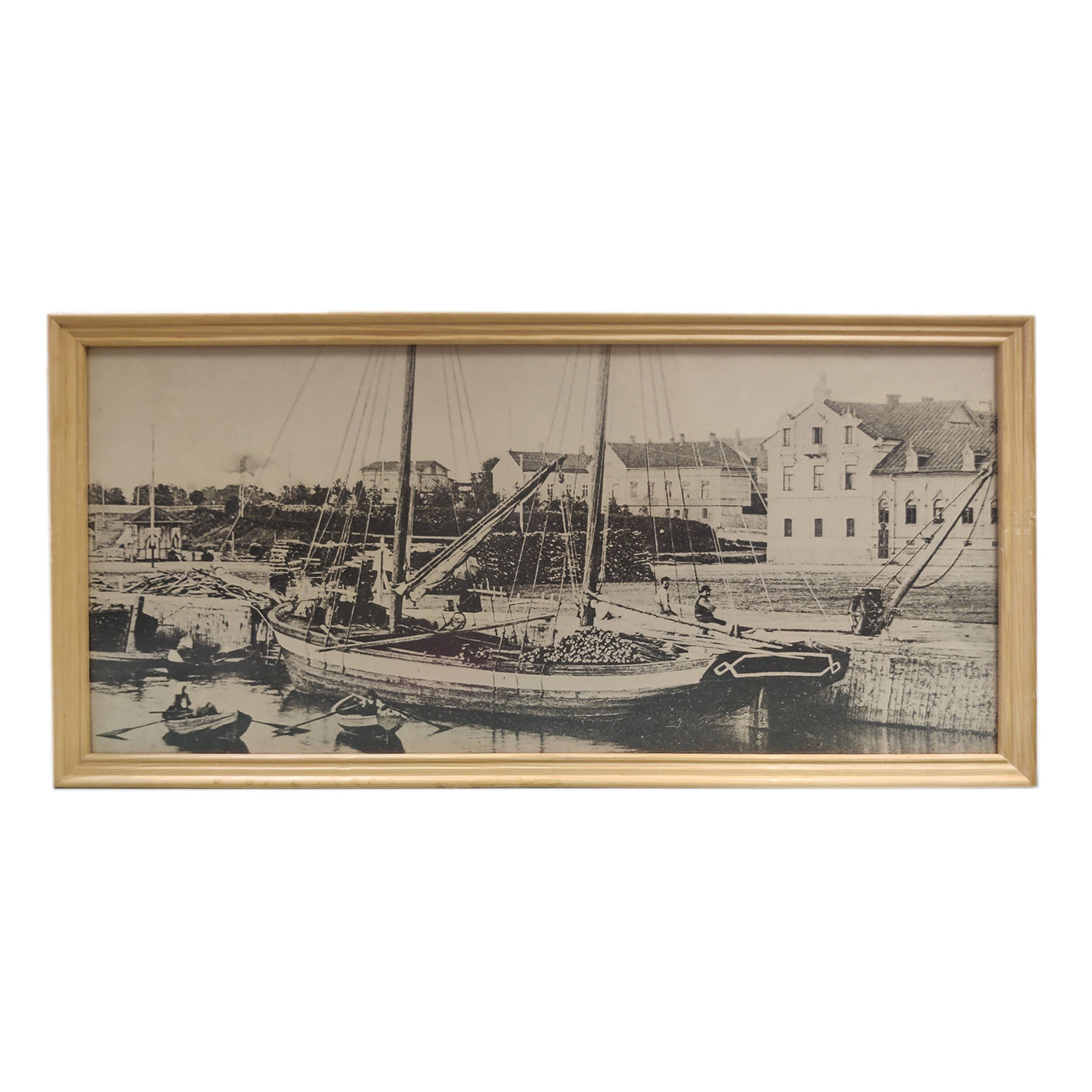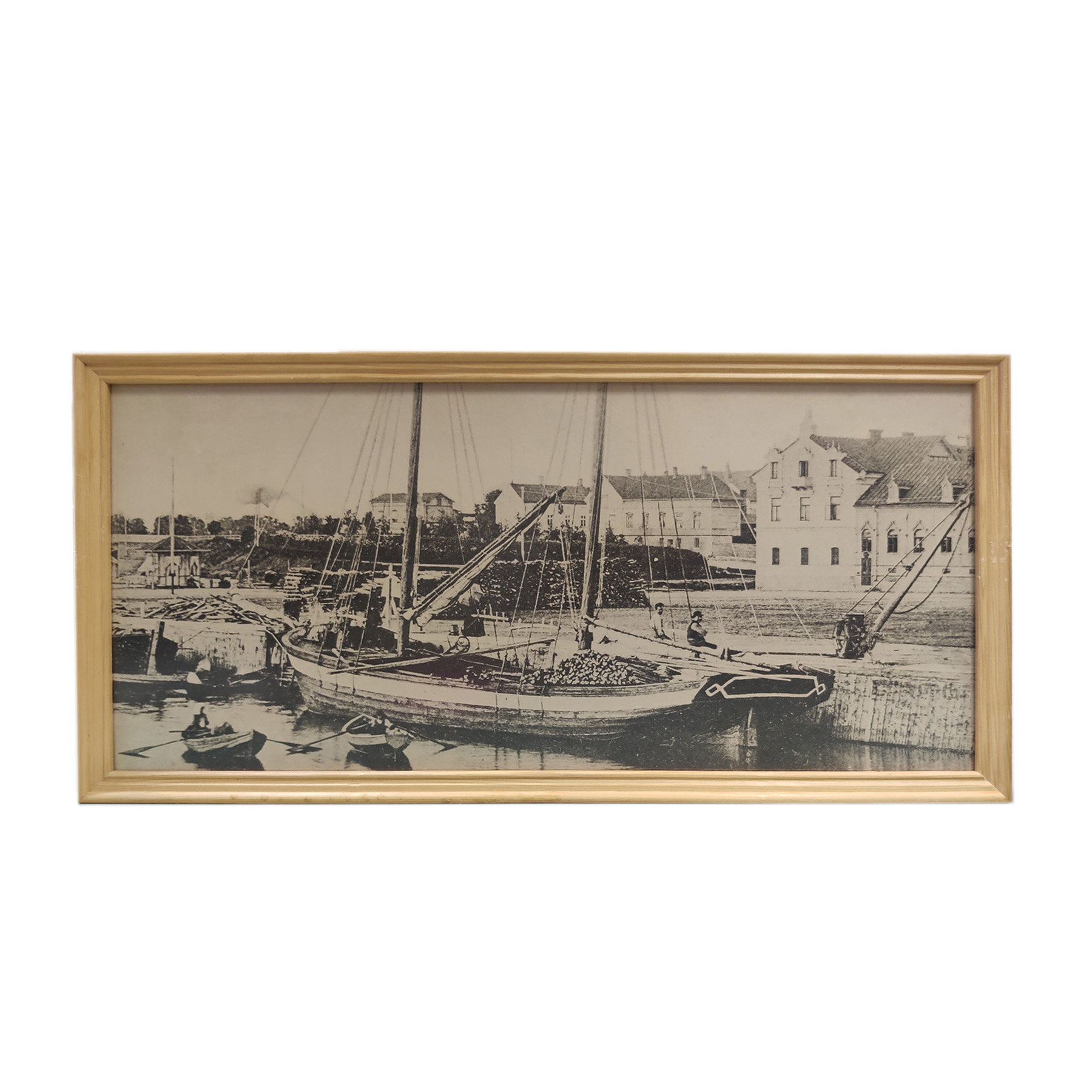 Kuva - Oulun Hamina vuosisadan vaihteessa.Hyvä kunto, kehyksissä kulumaa.Mitat: n. 60,5 × 30,5 cm.