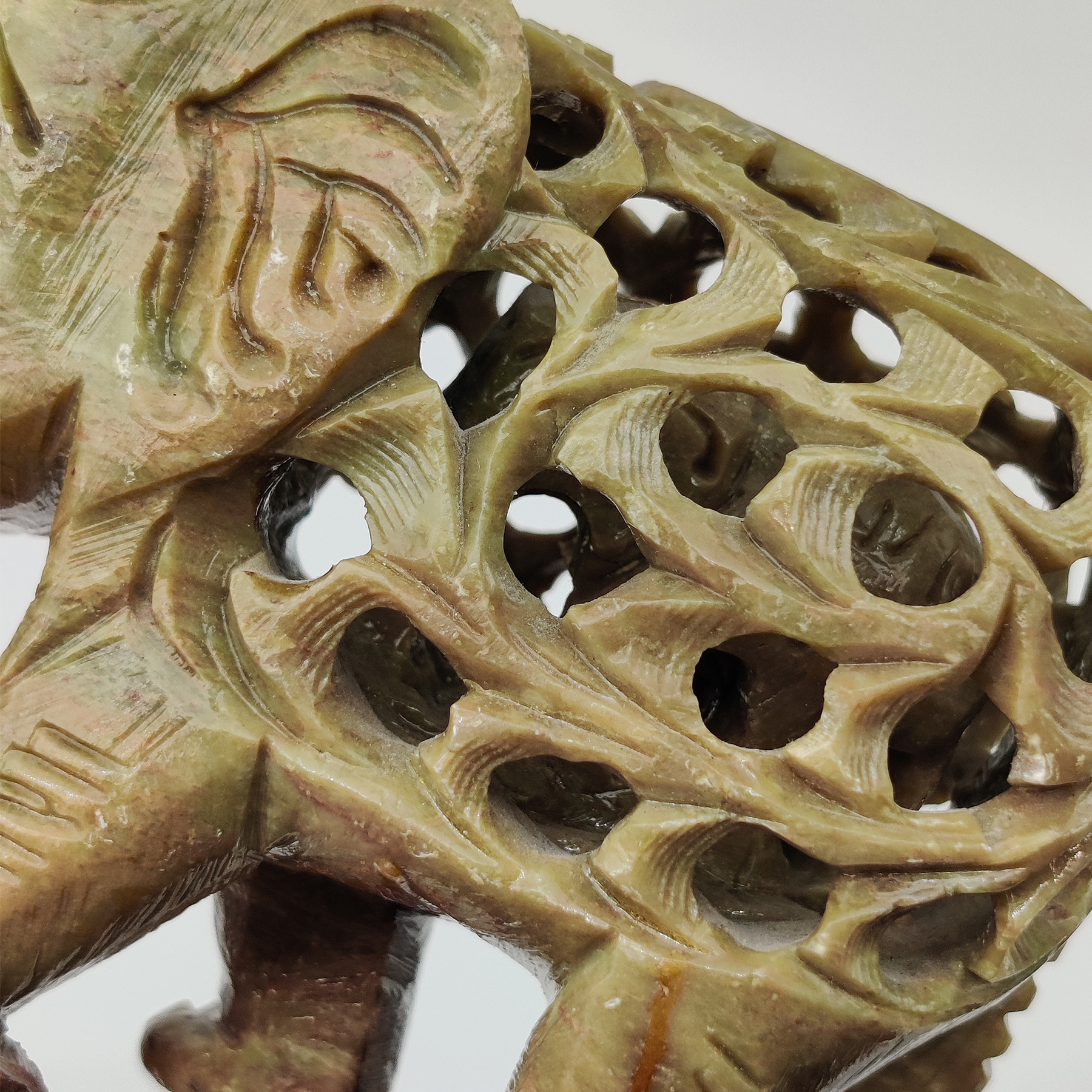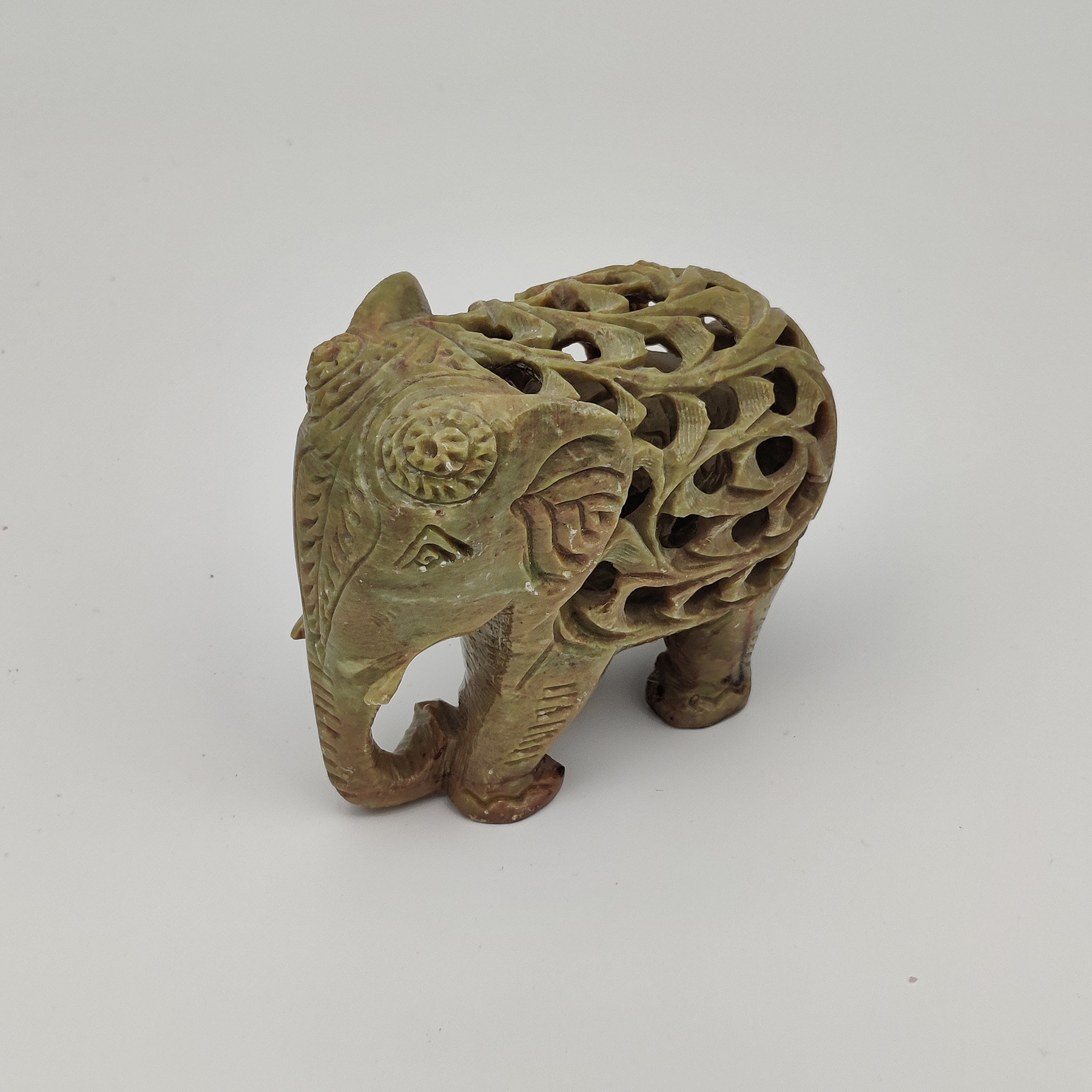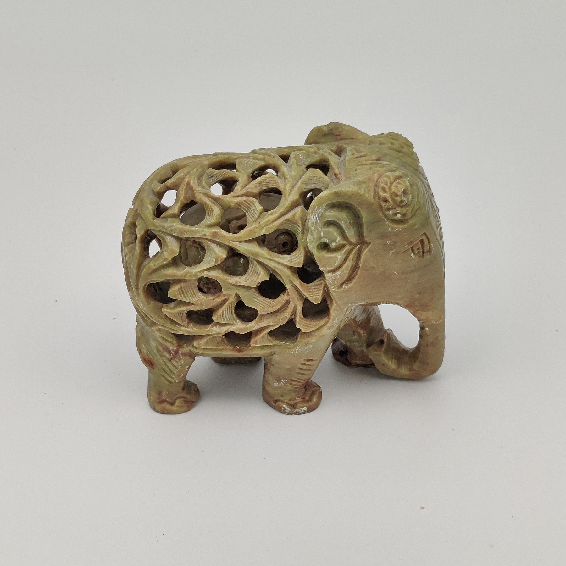 Käsintehty saippuakivestä veistetty norsuhahmo.
