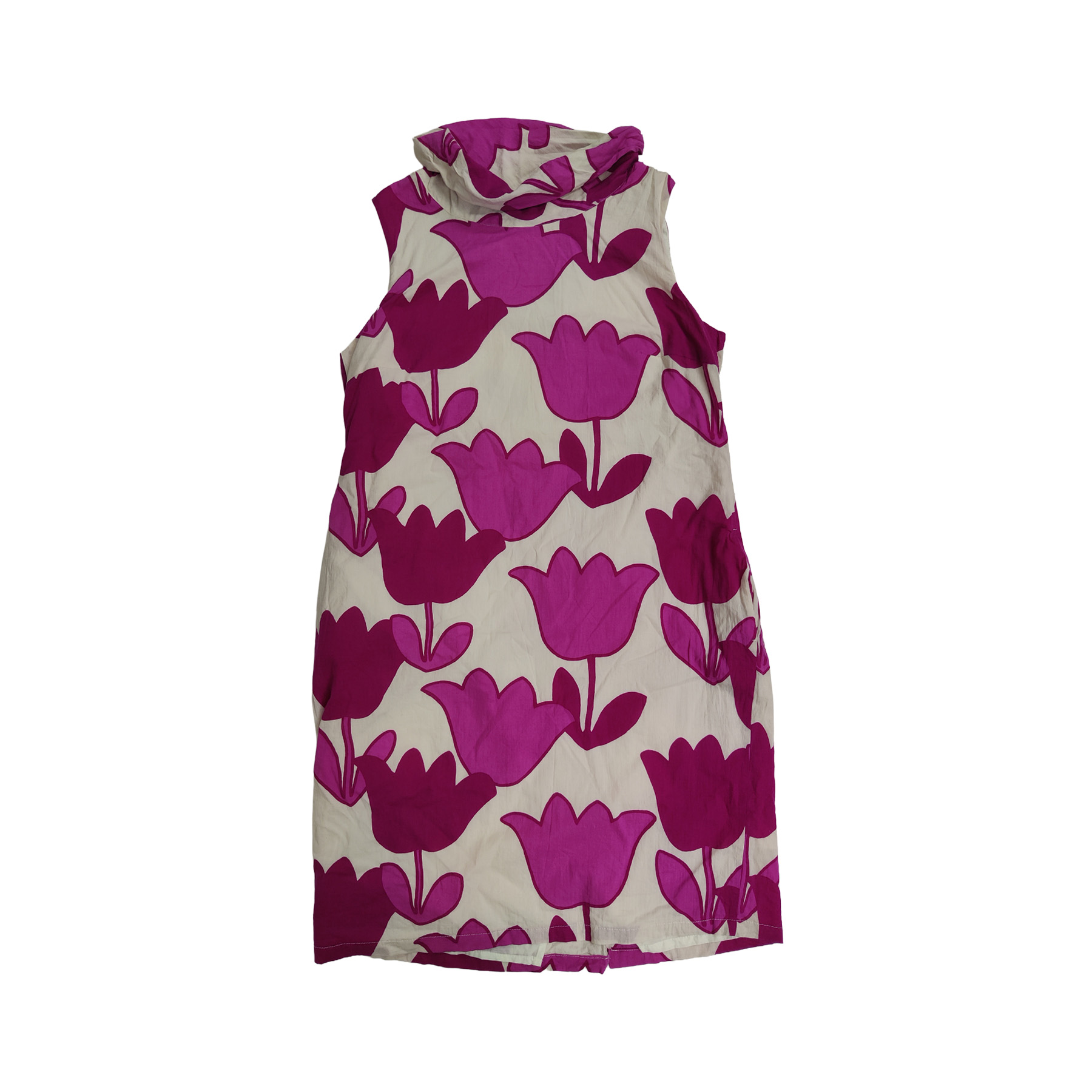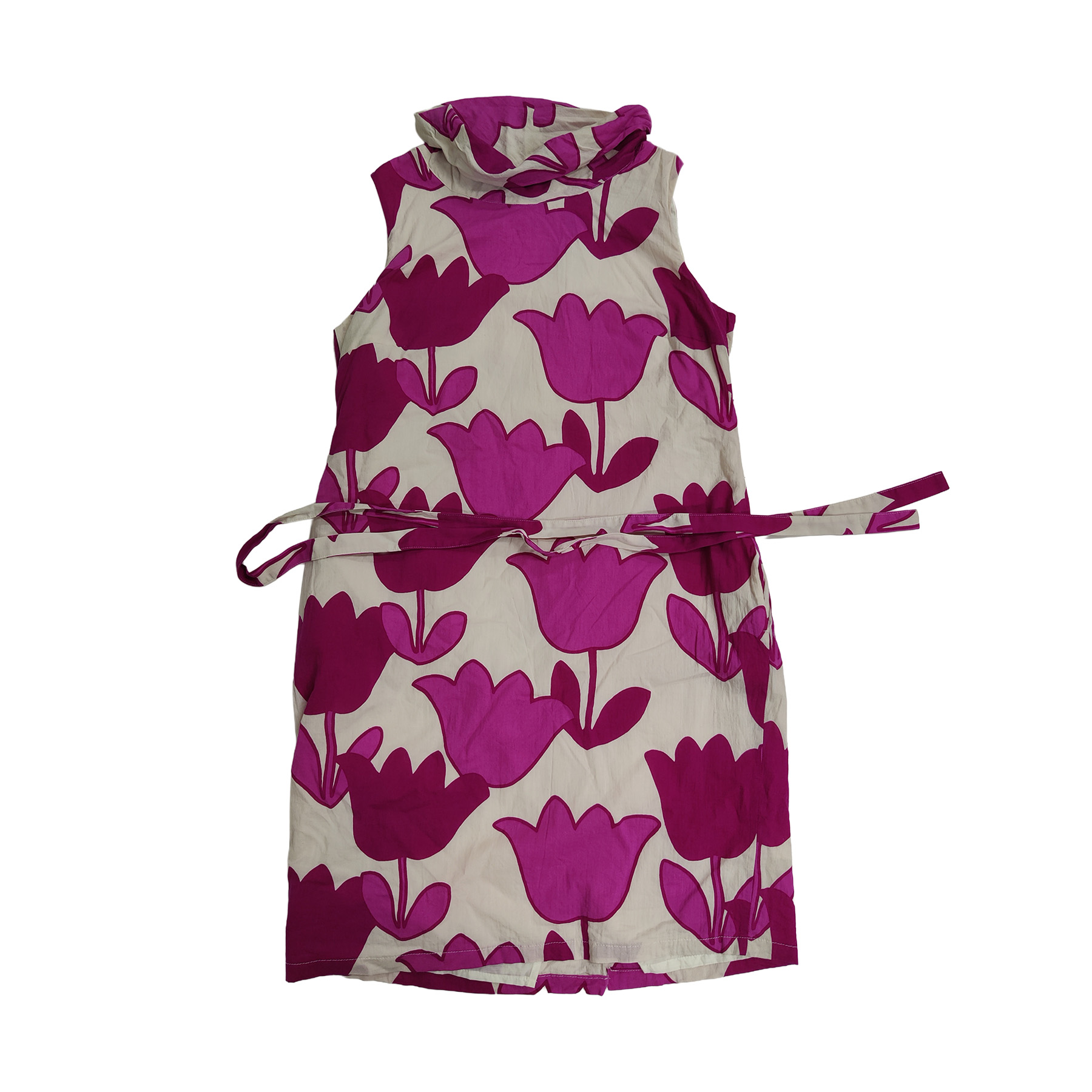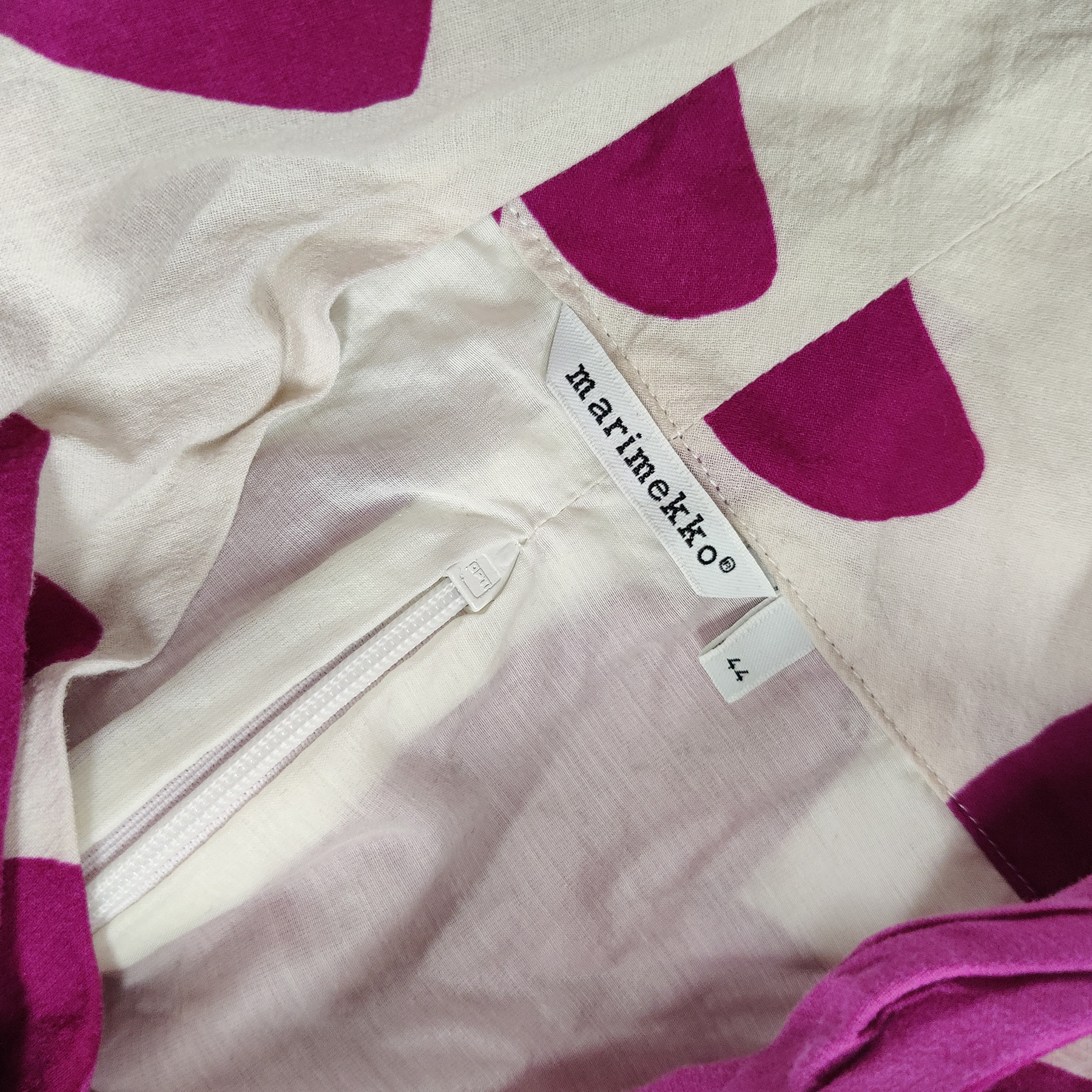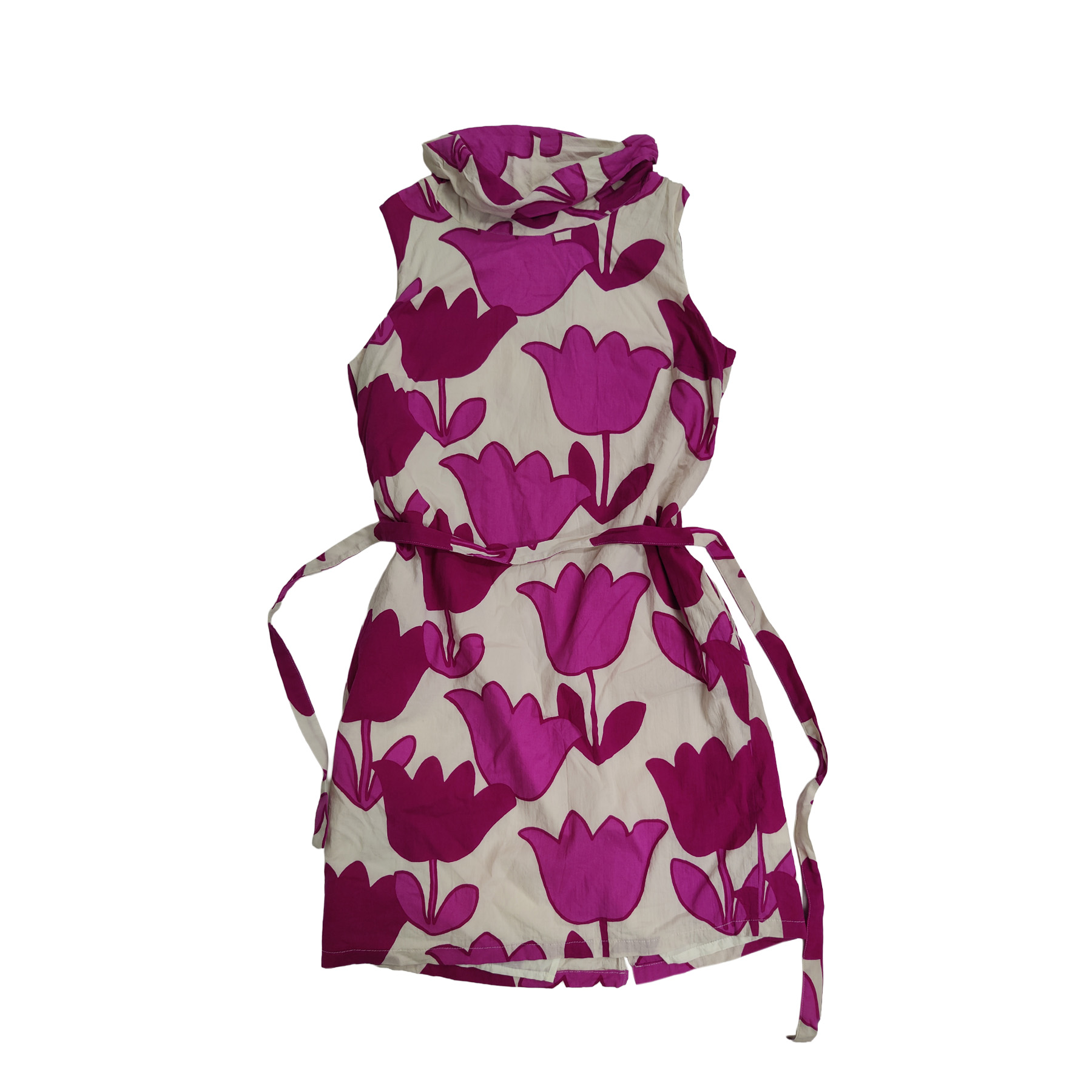 Vintage Marimekko -mekko, 100 % puuvillaa.Koko 44 (pieni, katso mitat). Mukana vyö.Hyvä vintage-kunto.Mitat: vyötärö 53 cm, pituus 98 cm.
