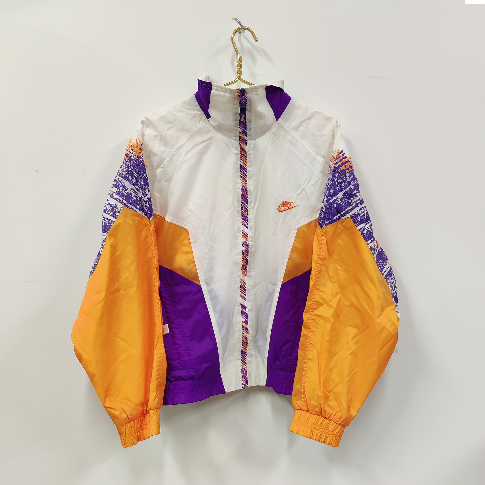 Vintage Nike tuulitakki hyvässä vintage-kunnossa. Klassinen retro-urheilutakki ja ajaton malli. Koko 38. Takana pieni jälki (näkyy kuvassa), muuten siisti yleisilme.Mitat: Kainalo–kainalo: noin 62 cm, pituus: noin 68 cm.