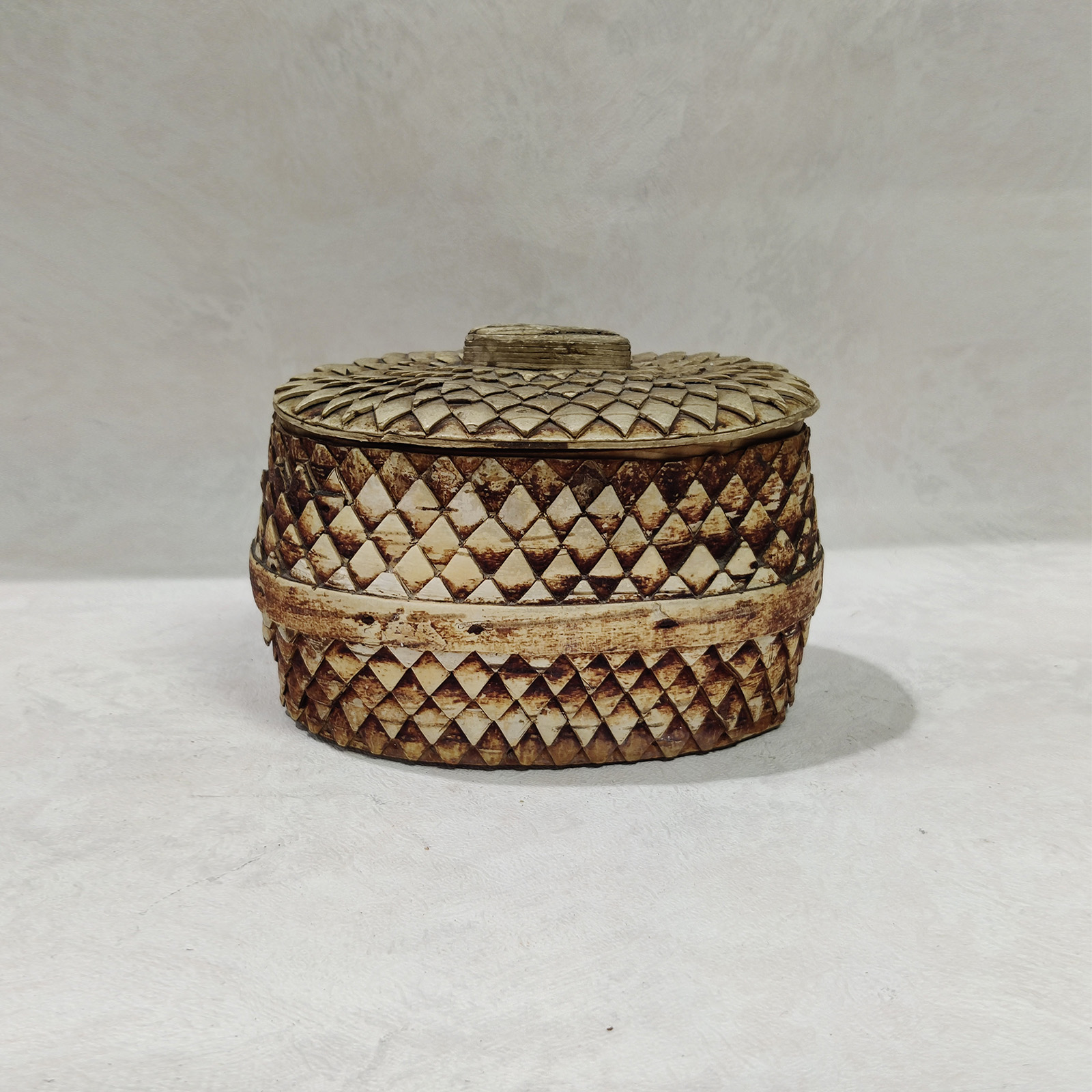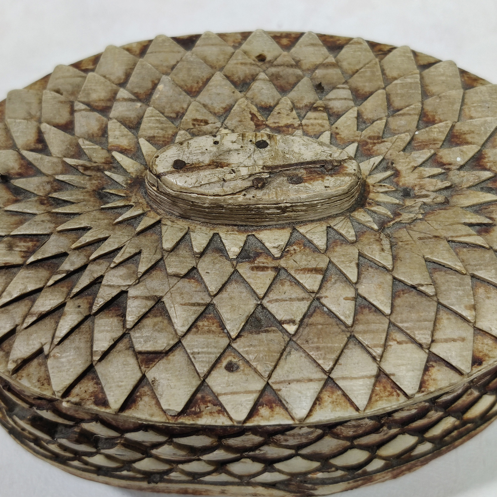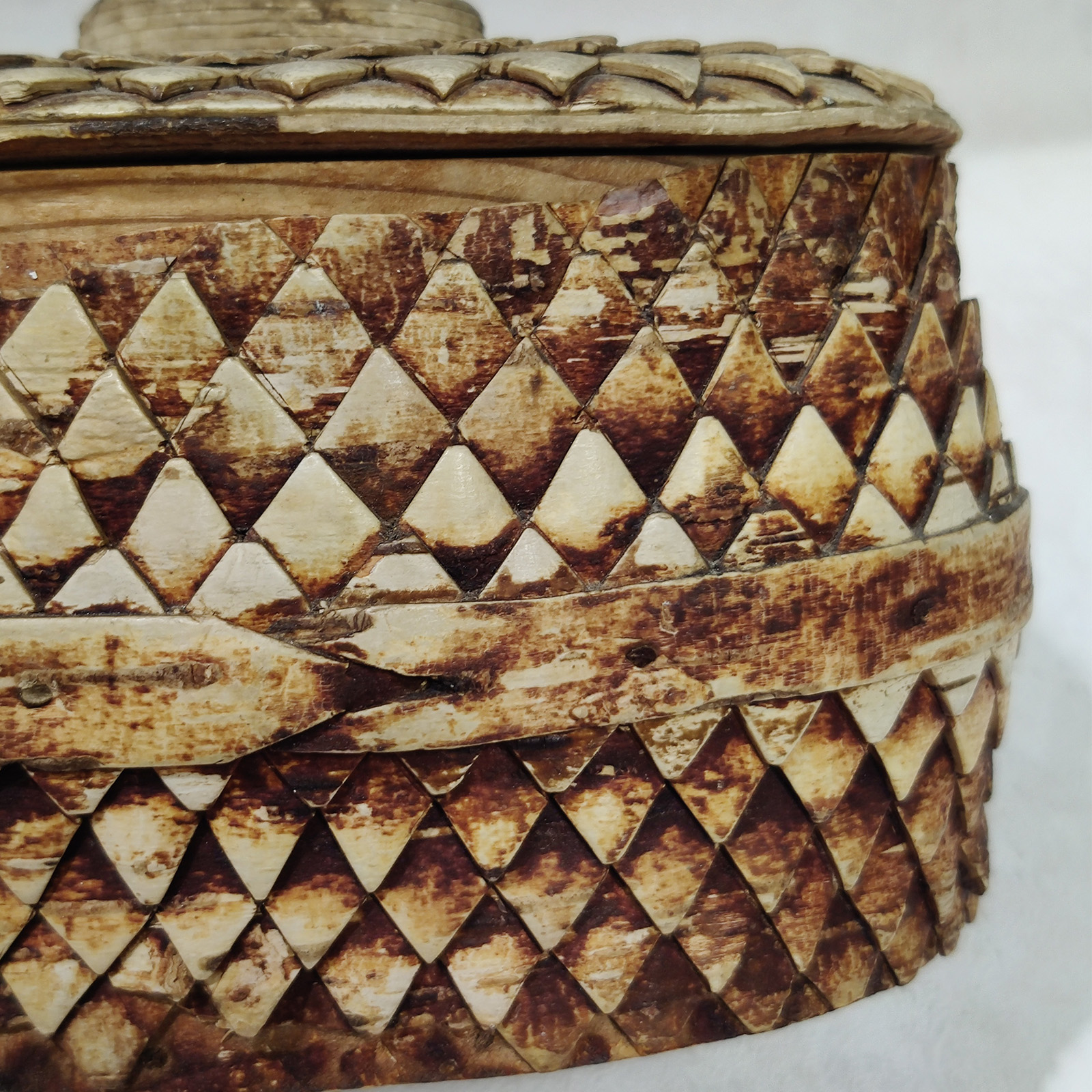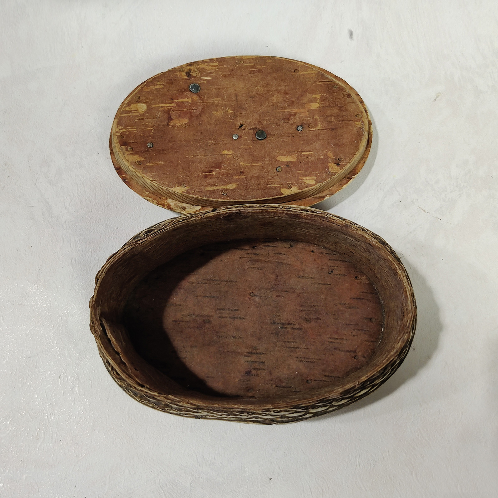 Vintage puhdetyö / tuohirasia, todennäköisesti 1940-luvulta.Hyvä vintage kunto, kansi ei mene kokonaan kiinni.Mitat: 14,5 × 9,5 cm, korkeus noin 10 cm.