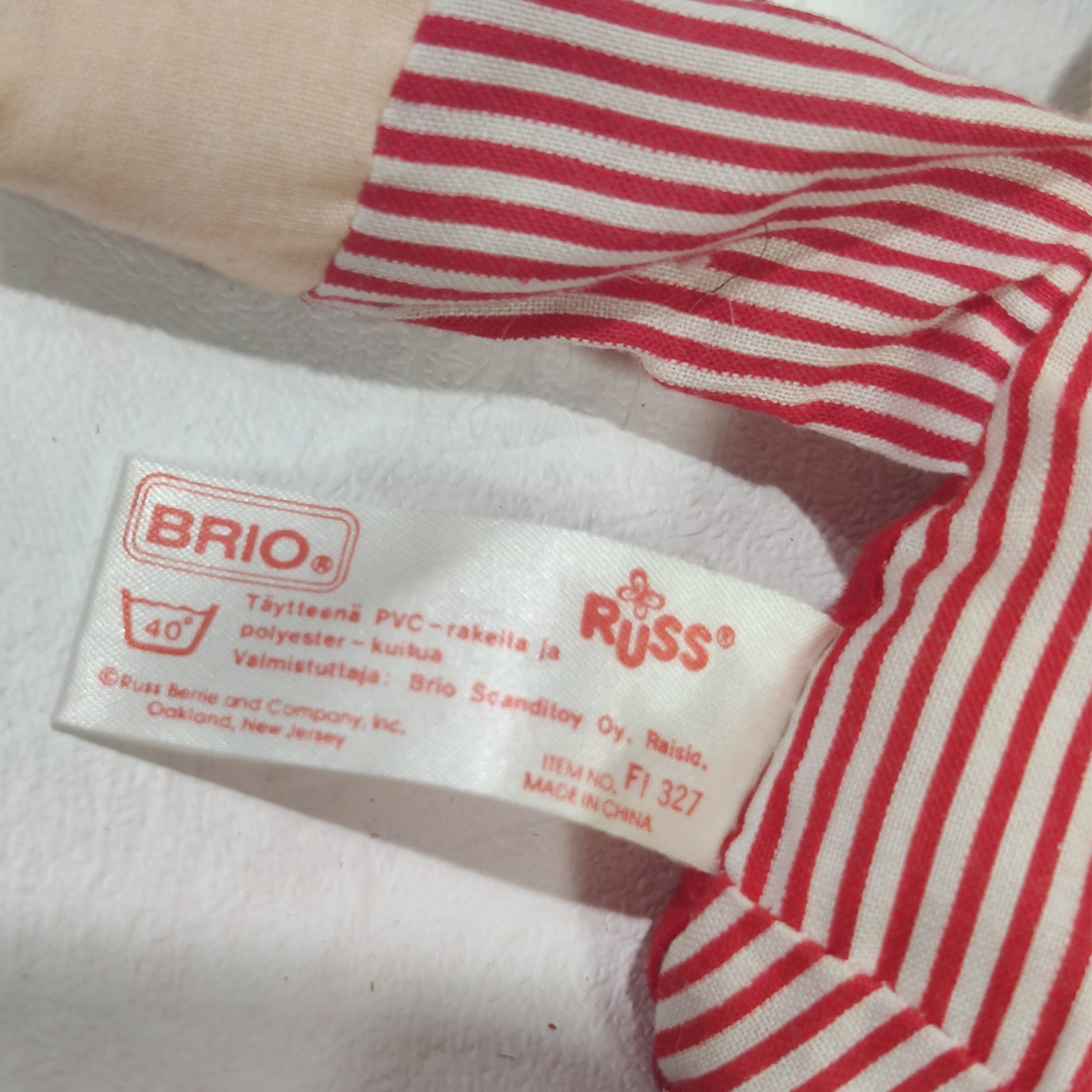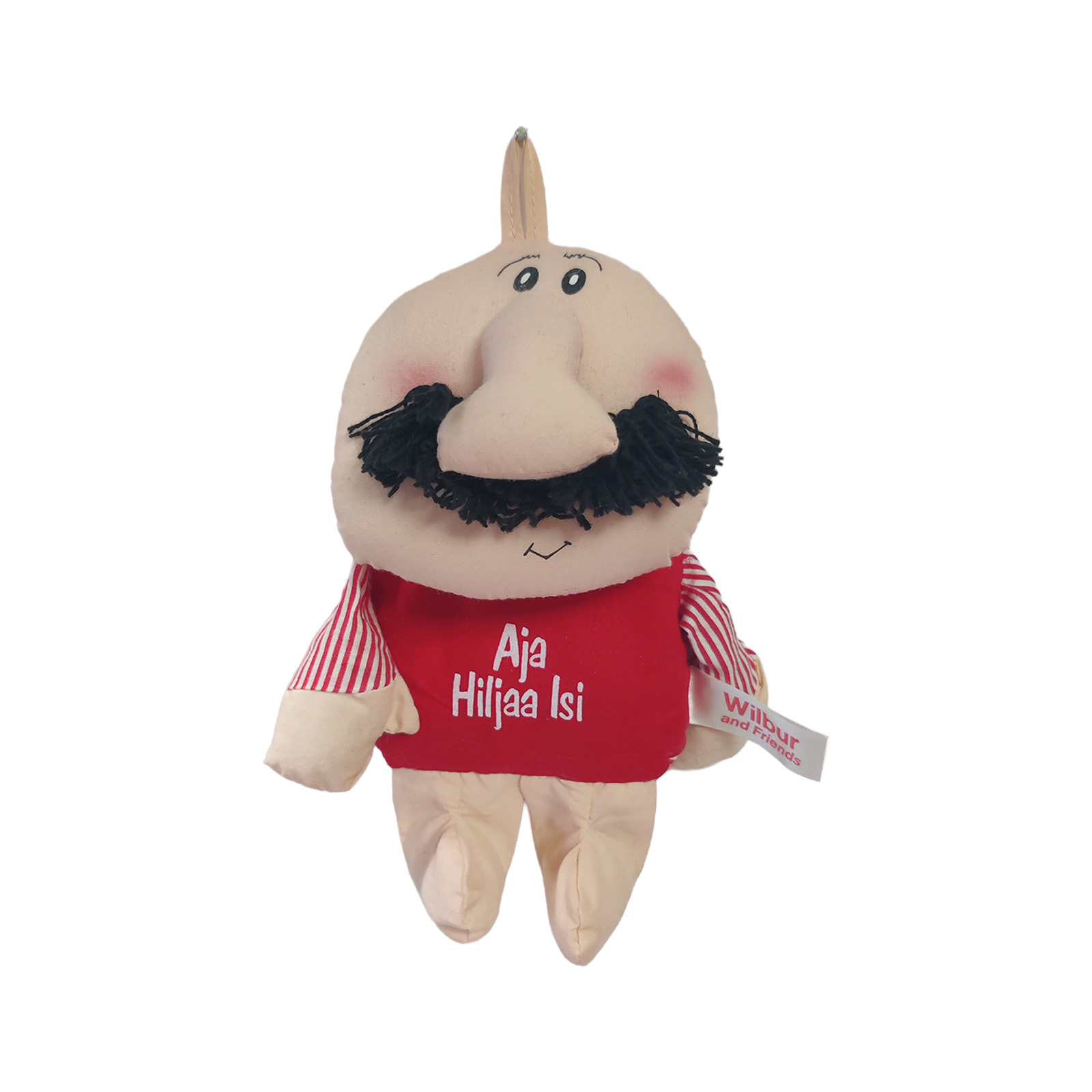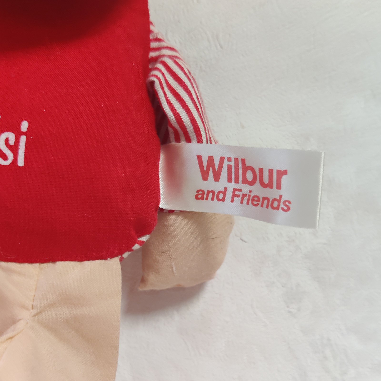 Wilbur and Friends pehmolelu 1980-luvulta, teksti ”Aja hiljaa isi”.